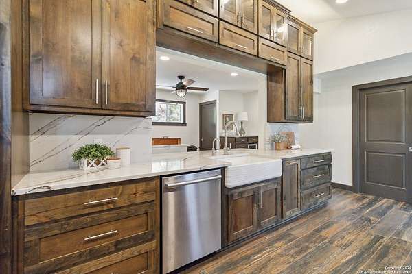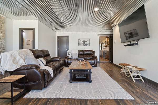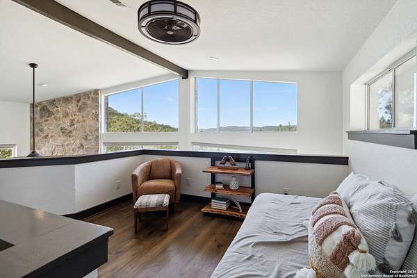 Whether you're an avid outdoor enthusiast or simply seeking a peaceful retreat, this property delivers an unmatched opportunity to connect with nature. The newly chip paved road leads the way to a recently renovated home featuring 4 bedrooms (including dual primaries), 4.5 bathrooms, a kitchen with top of the line Bosch appliances, and a game room. Enjoy the breathtaking hilltop views from the two story wall of windows, wrap around porch, or the balcony just off the secondary bedrooms. A spacious outdoor patio is ideal for entertaining large groups, with a big concrete pad and a covered pavilion that's perfect for gathering and some of the best stargazing by night. A reliable private water well (over 700 feet deep) and septic system provide two fewer monthly bills than what you pay in the city. With high speed Google Fiber available, you can still be as connected as you need to be. Property overview: Completely high fenced to contain approximately 100 exotic game including Scimitar Oryx, Blackbuck, Axis, Mouflon Rams, Fallow, Red Stag, and Trophy White-tails. Four hunting blinds, two gravity fed protein feeders, three corn feeders, a bale hay feeder, two gravity fed water troughs, a 2,500 gallon water tank, two new 20' storage containers, and an outdoor shooting range (approximately 40 yards). Ag exemption keeps taxes low. Excellent income potential includes: Air BNB rental (currently renting for $875 per night) and guided trophy hunts. Aside from potential activities on the ranch including hunting, ATV cruising, shooting practice, BBQ and more, hikers will love the convenience to Lost Maples and Garner State Parks. Other nearby attractions include the charming town of Utopia: home to one of the most beautiful 9-hole golf courses in Texas, entertaining rodeos, and seasonal festivities. Swim, kayak, or fish at the Frio River or take in a rodeo at nearby Bandera, the "Cowboy Capital of Texas". Should you need to get to a larger city, you have only a 1 hour drive to Kerrville, 1.5 hrs. to San Antonio, and 1 hr. 15 minutes to Boerne.