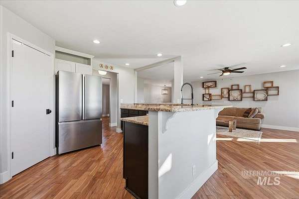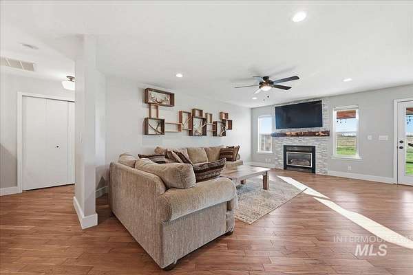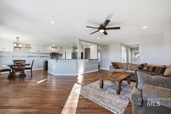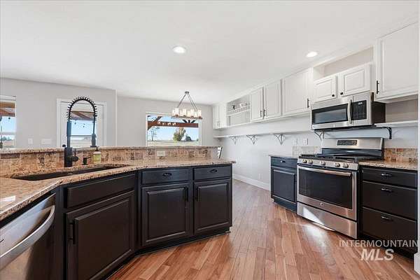 Welcome to this 6-bedroom, 3-bath home on nearly 5 acres in Meridian. Just over 3,300 sq ft with a split-bedroom layout for privacy and convenience. The Kitchen has granite countertops, Gas Range, lots of cabinet space, the lower level has been refreshed with new paint and LVP flooring for a fresh, like-new feel throughout. Enjoy outdoor living on the covered patio, and pergola perfect for year-round entertaining and relaxation. This property offers abundant space for chickens, horses, livestock friendly and ready for your animals or toys. Come take a look today. Ideal for families needing flexible living areas, work-from-home options, or hobbies that require room to grow. The almost 5-acre lot provides plenty of outdoor play, gardening, and potential outbuildings, all in a desirable Meridian location with easy access to amenities.