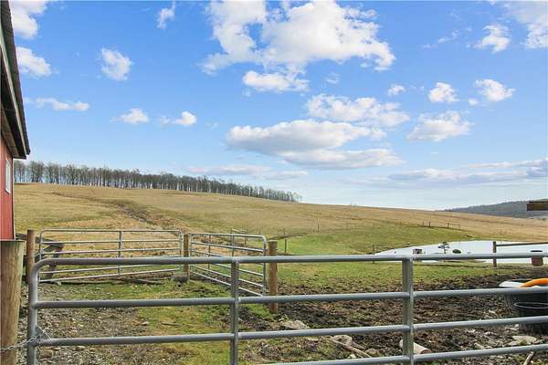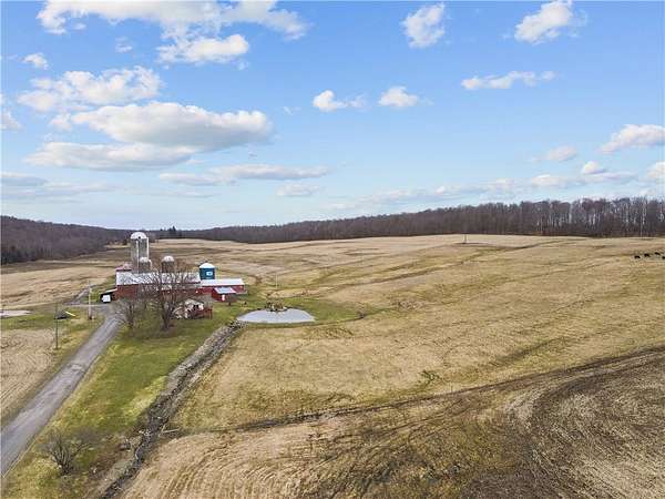 A rare offering where privacy, beauty, and functionality come together across a truly one-of-a-kind setting. Tucked off a quiet country road and accessed by a town-maintained dead-end drive, this property unfolds with a sense of arrival-rolling hills, open sky, and a picturesque approach framed by wildflowers and pastureland. With no immediate neighbors, the setting feels both expansive and deeply private, with sunsets that stretch across the horizon just beyond your front door. The home is warm and welcoming, filled with natural light and grounded by Amish-crafted hardwood floors. A spacious country kitchen serves as the heart of the home, seamlessly connecting to a wraparound deck-an ideal place to slow down and take in the view. Below, a swimming pond reflects the landscape, complete with a charming tree trunk bridge leading to its own island and duck house, adding a storybook quality to the grounds. The main level offers comfortable, single-level living with a primary suite and en suite bath, along with two additional bedrooms and a full bathroom. The lower level expands the footprint with additional living space, three bedrooms or flexible-use rooms, and another full bath-well-suited for guests, hobbies, or multigenerational living. For those seeking a working property or hobby farm, the infrastructure here is exceptional. Three primary barns are fully equipped with water, electric, and updated lighting. Features include an indoor dirt riding arena, heated workshop, established dairy setup, livestock accommodations, and thoughtfully designed cattle fencing for efficient handling and loading, with hot wire along the perimeter. Modern convenience meets rural living with high-speed fiber optic internet, while everyday essentials-groceries, hardware, dining, and golf-are just minutes away. Syracuse and Binghamton are both within an hour, offering access without compromise. This is a property that invites a different pace- where mornings begin with mist over the fields, afternoons are spent outdoors, and evenings close with uninterrupted sunsets. A place to live, work, and breathe, surrounded by land, light, and quiet. More land available.