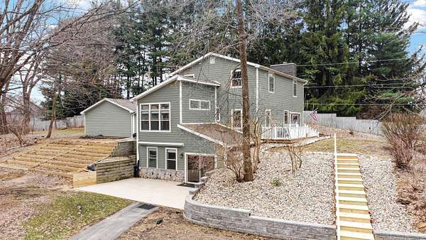 Perfectly designed for multigenerational living, this five-bedroom, three-bath, two-story home with a finished walk-out basement is quietly nestled on 2.18 picturesque acres. This home was completely transformed in 2016 with extensive top-to-bottom renovations including the addition of a basement and sunroom. The main level offers an updated kitchen with quartz countertops, stainless steel appliances, and hardwood flooring flowing through the living and dining areas. A scullery/laundry space keeps everyday living organized and clutter-free. The sunroom offers breathtaking views of wildlife and surrounding nature, creating a peaceful retreat year-round. A dedicated home office--easily convertible to a sixth bedroom--is conveniently located adjacent to a full bath. Upstairs, three generously sized bedrooms accompany a spa-inspired bath featuring a double sink vanity, soaking tub, and tiled shower. The walk out lower level expands living space with a generously sized family room, 2 additional bedrooms, full bath, and kitchenette--ideal for guests or extended family. Recent 2025 improvements include a Kohler whole-house generator, 20x32 outbuilding, second driveway added, new water heater, updated window treatments, new front walkways, front porch and side patio with retractable SunSetter awning. The scenic acreage features wildlife, fruit trees, and a dedicated garden area--offering privacy, functionality, and natural beauty in one remarkable property. Schedule a showing today!