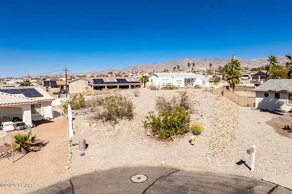 Est $1,094/moDiscover the perfect canvas for your dream home on this spacious vacant lot just over 1/4 acre in size. Nestled at the end of a quiet cul-de-sac, this property offers privacy, tranquility, and stunning front-facing lake views. Imagine waking up to a beautiful view of Lake Havasu and enjoying the peaceful sunsets right from your future doorstep. With its prime location and breathtaking scenery, this lot is an exceptional opportunity to create a custom retreat. Don't miss out on this rare find-your lakeside oasis awaits!