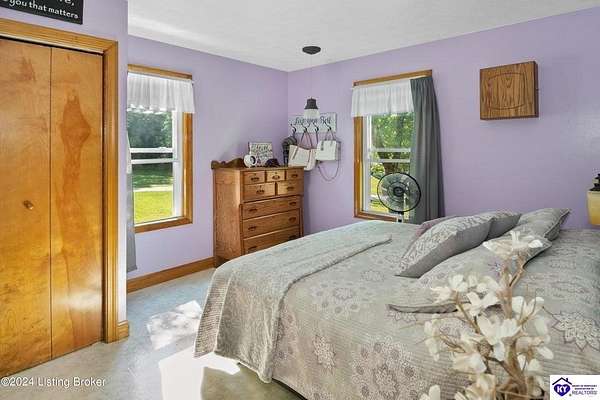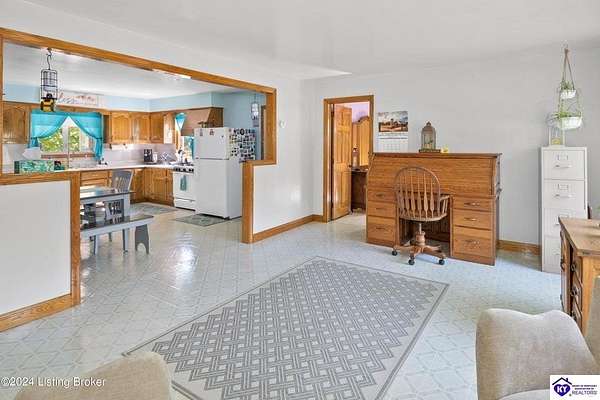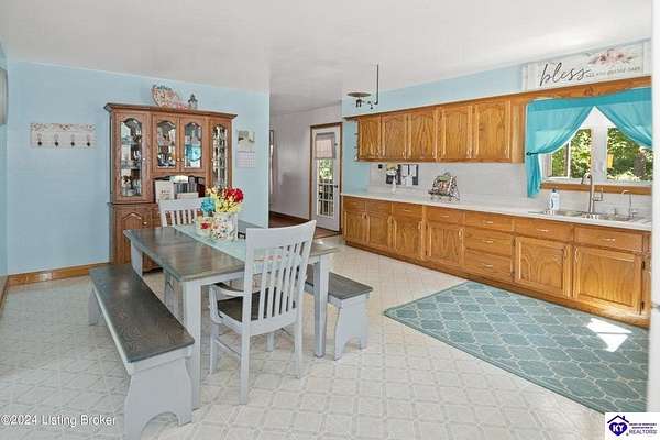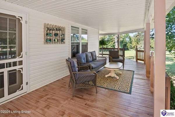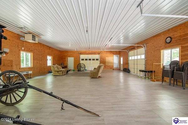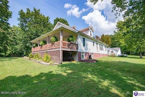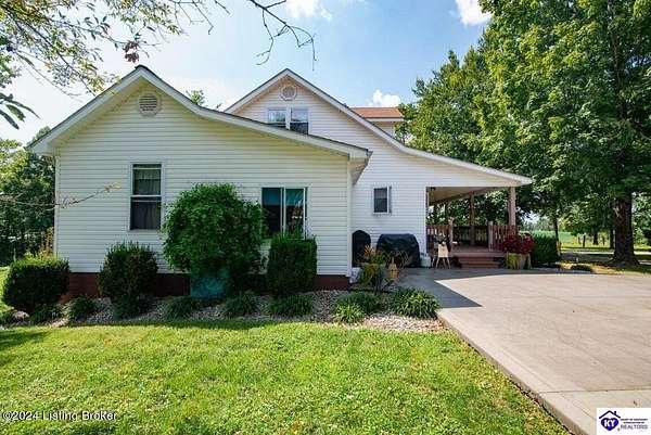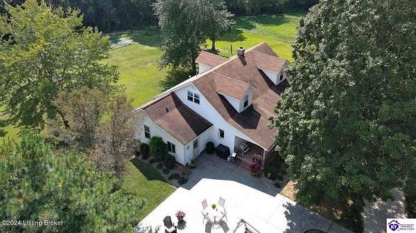 7 ACRES! Includes 4 bedroom Cape Cod style home, huge shop/garage and a 4 stall barn! Deep covered porch wraps around half the house,overlooking nice landscaping with plenty of shade trees. Inside you'll discover hardwood floors and bright living areas. Large country kitchenand a sunny sitting room. Two bedrooms and full bath on main floor, as well as a convenient mud room. Two more bedrooms on the secondstory. Walk-out basement is unfinished, offering plenty of storage, a full bath and potential additional living space. The insulated shop/garageeasily accommodates 4 cars, with heated office space, a shower and solar panels. Barn has 4 stalls, feed/tack room and a water hydrant. Andit is just minutes from Nolin Lake State Park!