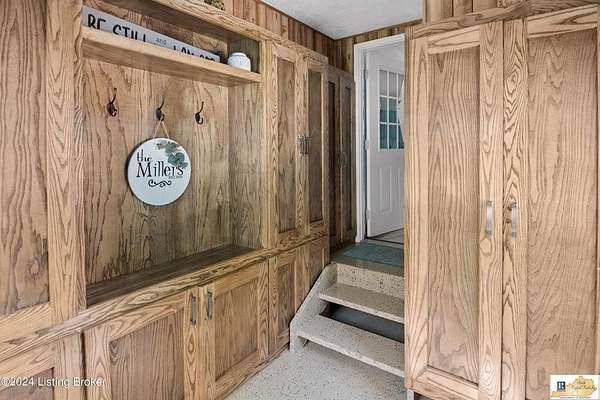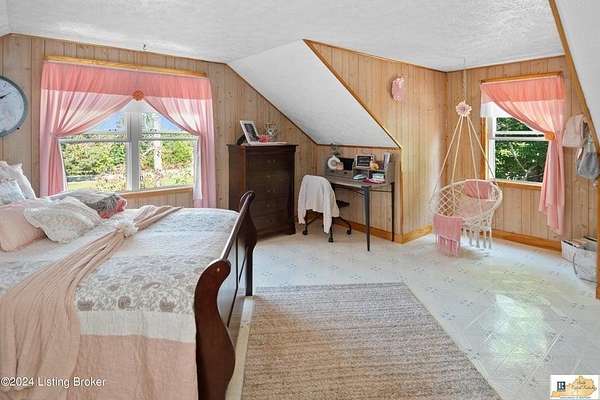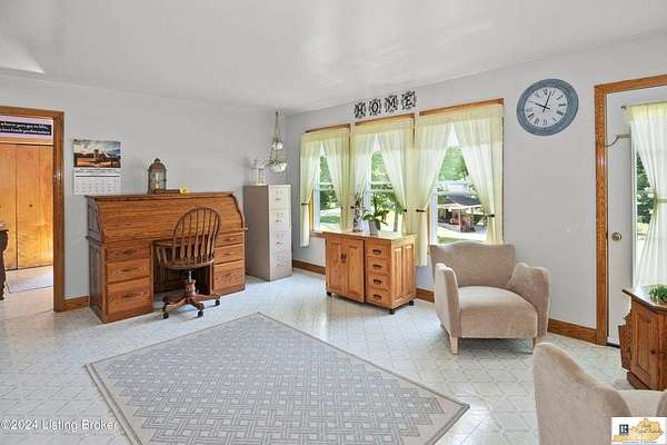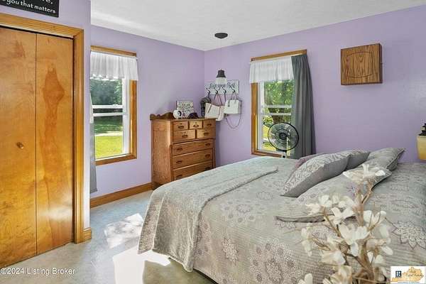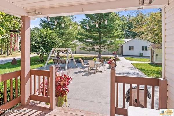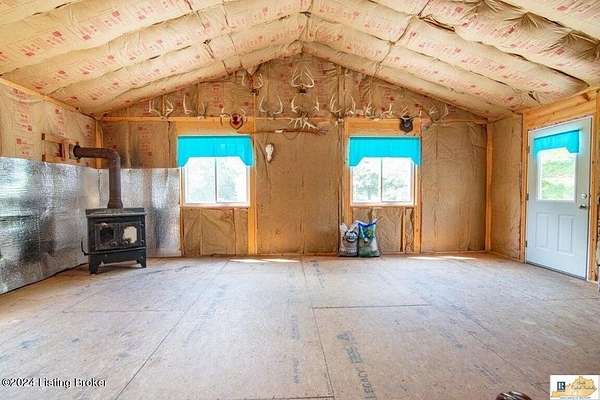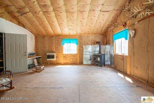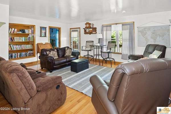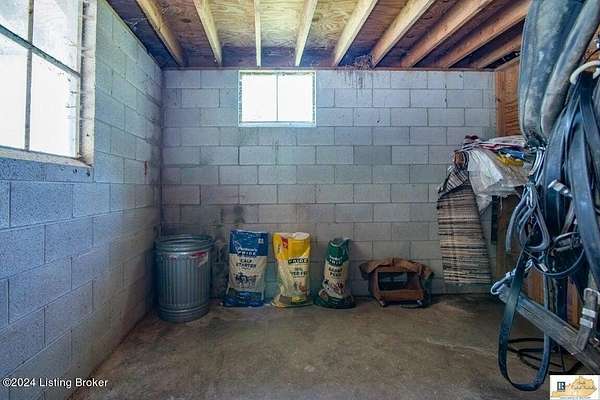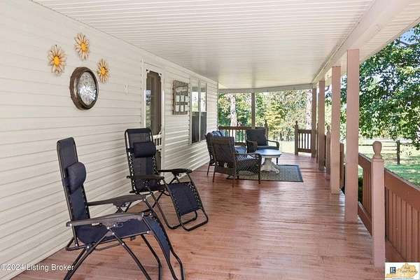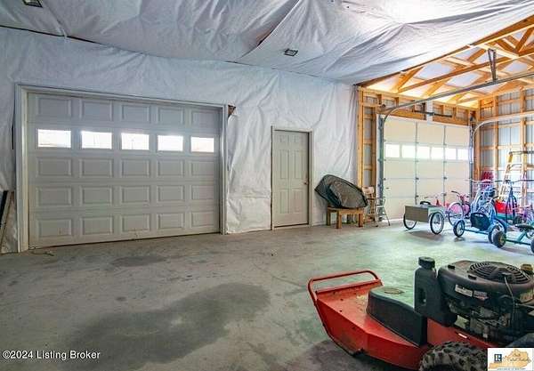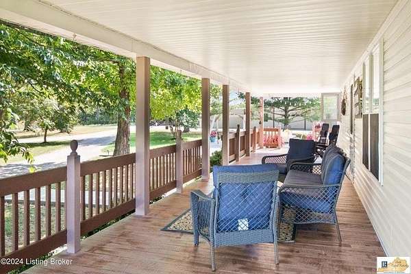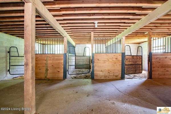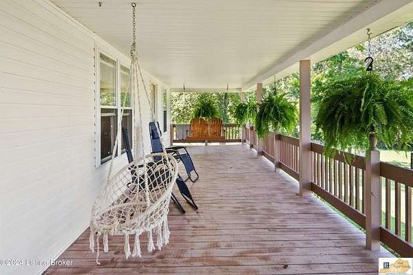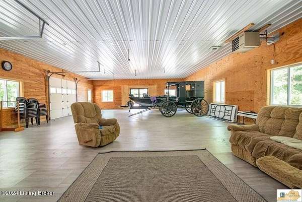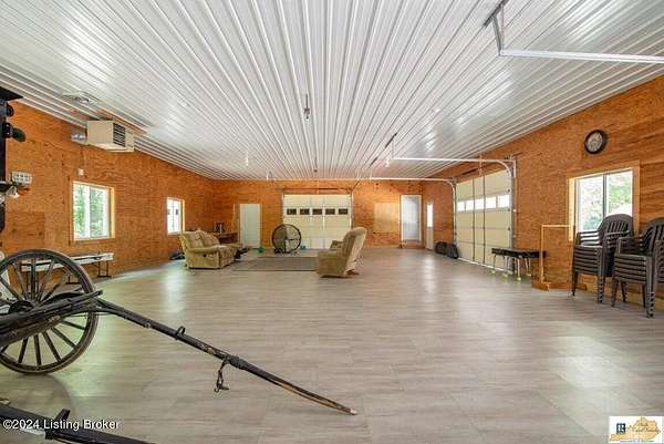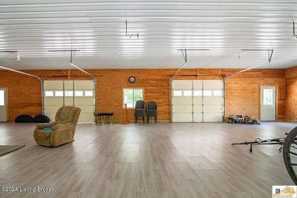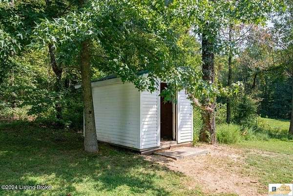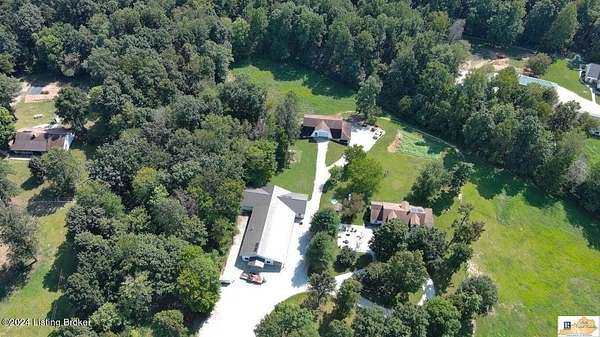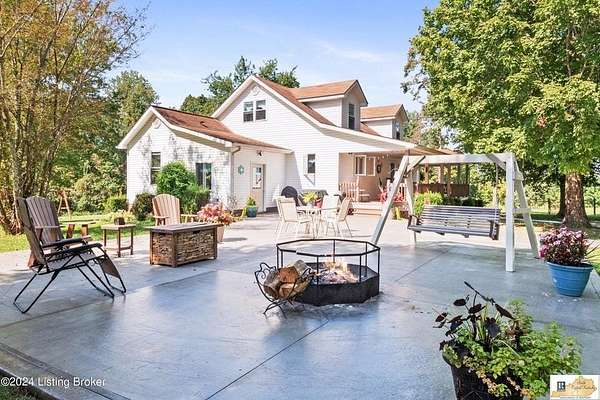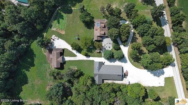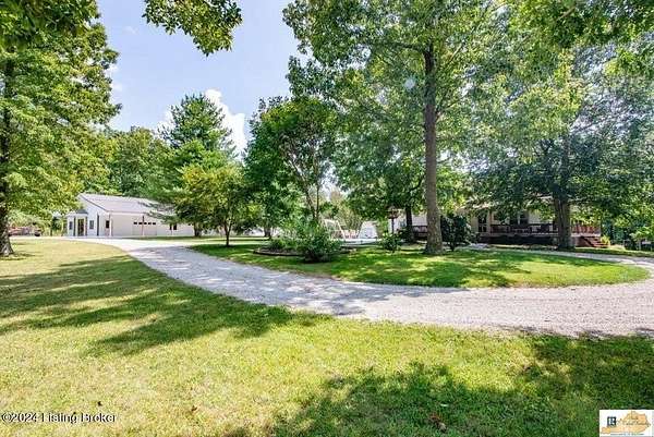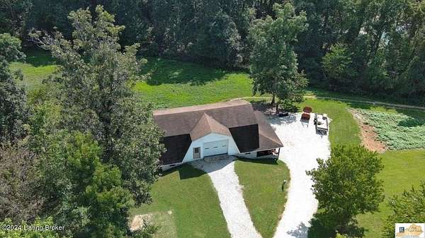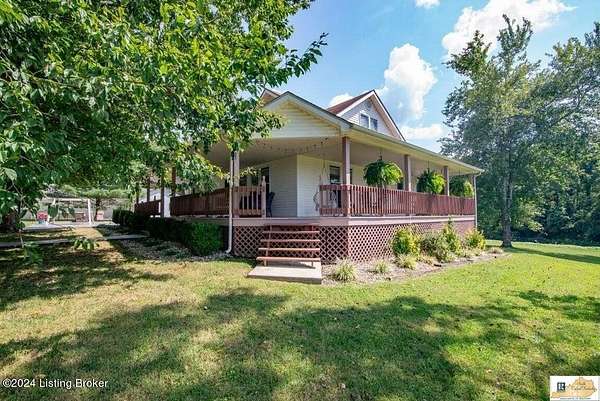 5 ACRES! Includes 4 bedroom Cape Cod style home, huge shop/garage and a 4 stall barn! Deep covered porch wraps around half the house, overlooking nice landscaping with plenty of shade trees. Inside you'll discover hardwood floors and bright living areas. Large country kitchen and a sunny sitting room. Two bedrooms and full bath on main floor, as well as a convenient mud room. Two more bedrooms on the second story. Walk-out basement is unfinished, offering plenty of storage, a full bath and potential additional living space. The insulated shop/garage easily accommodates 4 cars, with heated office space, a shower and solar panels. Barn has 4 stalls, feed/tack room and a water hydrant. And it is just minutes from Nolin Lake State Park!