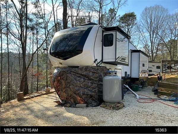 LOOKING FOR your serenity in the Mtns? This "Private Peaceful spot in the GA Mountains" is ready to go - ready for you to move right in! >For Sale not for rent!< Enjoy time away from the hustle & bustle of the city clean and comfortable. Warm, Inviting, Spacious, Open, all prepped for enjoying the beautiful surroundings of this unique spot. Overlook the greenspace behind you with tons of wildlife, fire pit, large sitting area, privacy. The yard is maintenance free w/ stone and mulch. Bonus: Extra parking. Very private. Plenty of room to add a roof-over, hot tub and an up to 200 sq ft storage bldg on this oversized RV Lot. Easy Access to the Riverside Pool + Dog Park & foot bridge crossing access to Fishtrap Park and its picnic pavilions and Kids Play areas. All resort amenities available including Rec Center with indoor/outdoor 365 pool, game room, exercise room, putt putt, pickleball, tennis, basketball, 2 outside pools, small fishing lake, 5 parks on the river, walking trail & more.