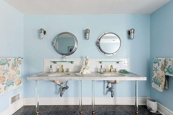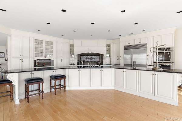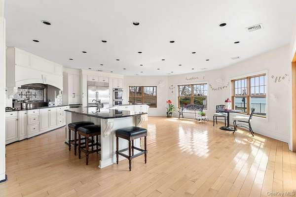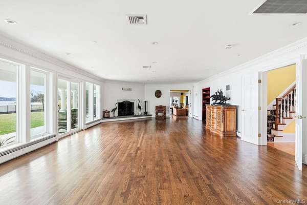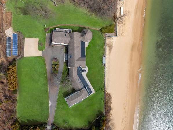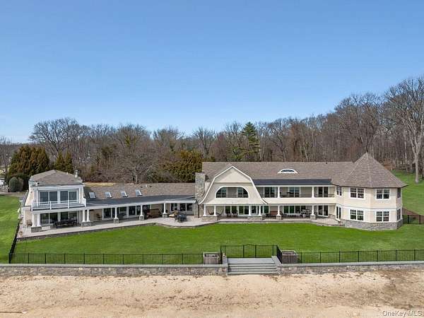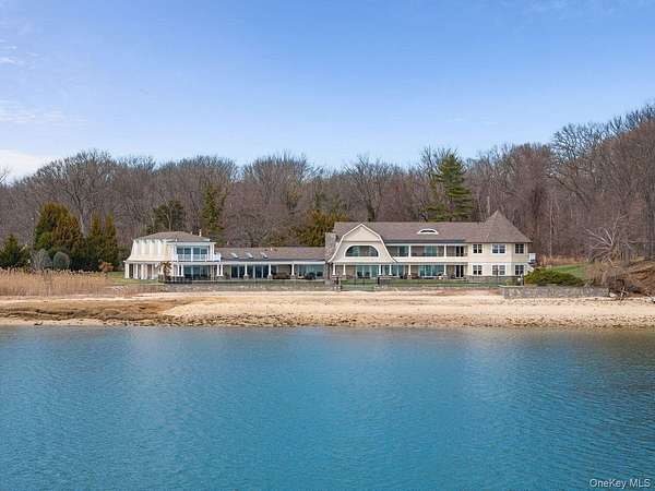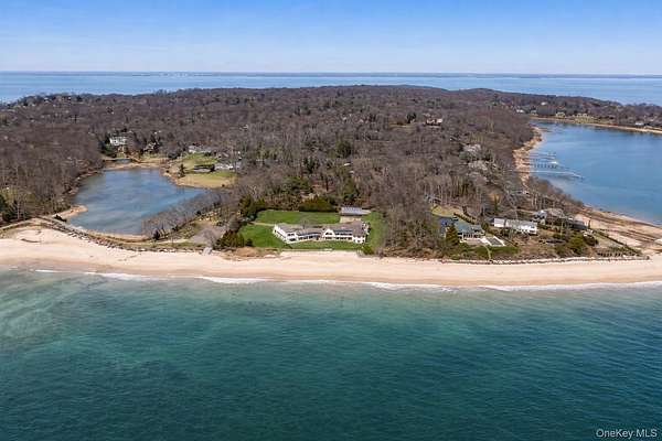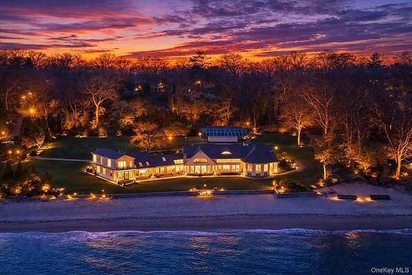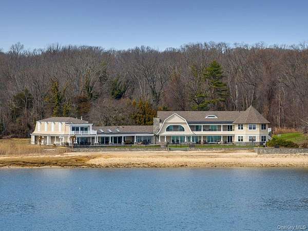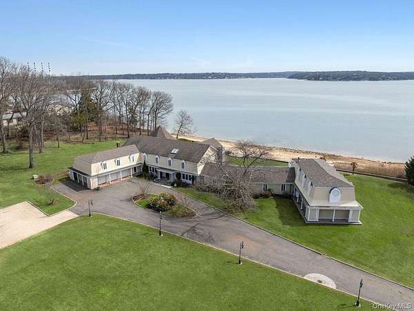 Rising along one of the most prestigious stretches of shoreline in Asharoken, this extraordinary waterfront estate represents the largest and most significant residential offerings in the area. Set on approximately 3.43 private, gated acres with an impressive 400 feet of direct sandy beachfront along the Long Island Sound, the property offers exceptional scale, privacy, and uninterrupted water views near Northport Harbor. Encompassing approximately 12,000 square feet, this custom residence is designed for both grand scale entertaining and everyday living. Expansive, light filled interiors feature soaring ceilings, oversized rooms, and walls of glass that capture panoramic waterfront views from nearly every vantage point. Each bedroom is positioned to take full advantage of the coastal setting, offering a private retreat with sweeping water vistas. The home features 6 bedrooms and 6 bathrooms, along with two full kitchens, including a chef's kitchen with direct outdoor access for seamless indoor outdoor flow. A butler's kitchen further enhances convenience and entertaining capabilities. Resort style amenities include a saltwater indoor pool, private indoor racquetball court, and a marble spa-style bath. Additional highlights include separate guest quarters and a full length mahogany deck overlooking the harbor, ideal for enjoying sunrise and sunset views. The exterior grounds are equally impressive, featuring custom hardscape with a covered patio, fireplace, and expansive entertaining areas. The property's 400 feet of private beachfront provides direct water access and a rare sense of seclusion. Modern upgrades include a whole-house generator and a private solar farm. Elevation certificate on file. A rare opportunity to own a premier waterfront estate on Long Island's North Shore, offering a unique combination of size, setting, and lifestyle with convenient access to Manhattan.
