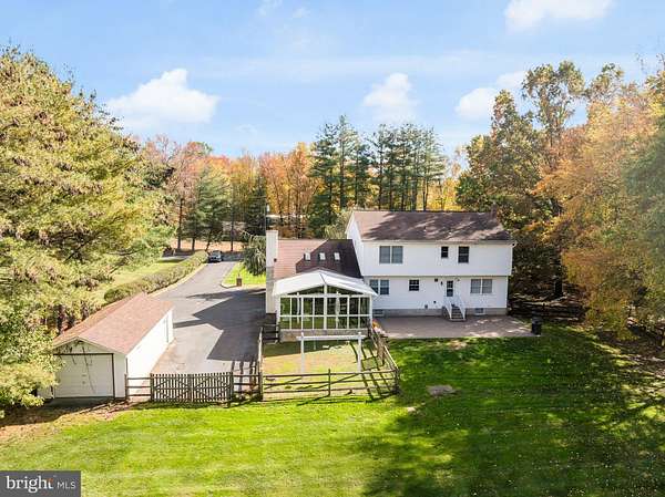 Welcome home to this storybook custom Colonial in the heart of Robbinsville, gracefully tucked away on virtually two picturesque acres where privacy, peace, and natural beauty abound. A long approach leads you to a charming front porch, the perfect spot to sip your morning coffee or unwind as the sun sets. Step inside to a grand, light-filled foyer that sets the tone for gracious living. The formal living and dining rooms, adorned with hardwood floors, invite everything from elegant dinner parties to cozy holiday gatherings. At the heart of the home, the updated kitchen delights with granite countertops, a classic tile backsplash, a generous center island, and a sunny eat-in area-a space where everyday moments become memories. The kitchen flows effortlessly into the warm and inviting family room, highlighted by a dramatic full brick wall fireplace that anchors the space with timeless character. Just beyond, a cheerful sunroom offers a serene retreat, surrounded by views of the scenic grounds and changing seasons. Upstairs, you'll find four spacious bedrooms, each offering comfort and flexibility, along with updated bathrooms designed for modern living. A full basement, waiting to be finished, offers endless possibilities-home gym, media room, or play space. Outside, the setting truly shines. Set far back from the road, the property offers a sense of seclusion while remaining a commuter's dream. A two-car side-entry garage and an expansive driveway provide parking for eight or more vehicles, perfect for gatherings large and small. All of this is nestled within a top-rated Blue Ribbon school district, making this home as practical as it is enchanting. A rare blend of charm, space, and setting-this Robbinsville Colonial is ready to welcome its next chapter.