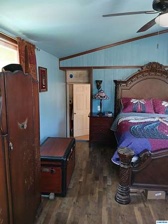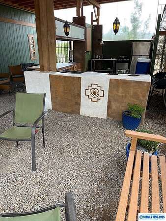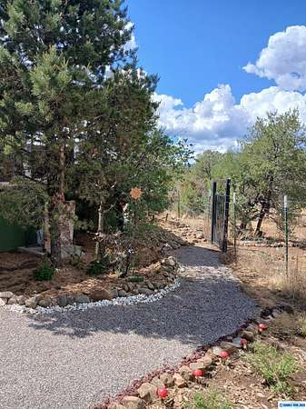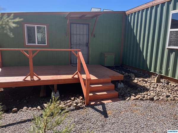 This 13 1/2-acre property is comfortably off-grid with solar and its own well, with 5 acres gated and fenced for security and to keep out animals. Land steps up 4 tiers with stunning views on top. A 450 Ft. dependable well with a 2500 Gal. holding tank fed by solar pump. The guest house is 500 Sq. Ft. 1bd 3/4 bath with a deck with its own water system and solar & propane heat. Also, A 900 Sq. Ft studio that could be a home it consists of 2 bathrooms and outdoor patio and kitchen. The third house is 650 sq ft. 2BR 3/4 bath and heated with a wood stove or propane and an attached Greenhouse. On demand water heaters in each house. There are many fruit bearing trees on the property.
