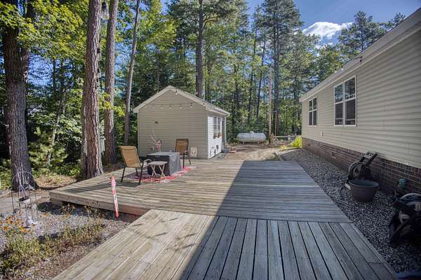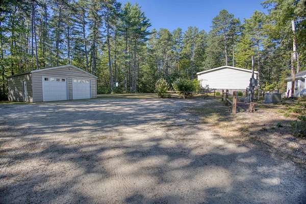 Immaculate, like-new 12 yr old manufactured home set on a private 2.27-acre lot! Thoughtfully designed and beautifully upgraded, this spacious home features an open-concept kitchen, with center island, dining area and living area with vaulted ceilings that create a bright, airy feel. The large primary suite includes its own private full bath and walk in closet. Central A/C and efficient propane heat provide year-round comfort. Step outside to enjoy the large sunny back deck, perfect for relaxing or entertaining plus a lovely firepit with sitting area. The property also includes a large heated two-car garage and a detached shed that has been transformed into a fully finished office with its own heat and A/C--ideal for remote work, hobbies or workout room. Nicely landscaped and in true turn-key condition, this property offers the perfect blend of comfort, function, and style. Whole house propane generator! All just minutes from the state boat launch on Ossipee Lake--making it a dream spot for year-round living or a getaway retreat. A must-see to fully appreciate all it offers!