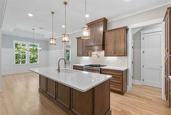 Discover your dream home with this stunning Craftsman-style residence, custom-built to blend timeless charm with modern luxury - NEW CONSTRUCTION, and ready for its new owner. Nestled on a private, wooded lot, this meticulously designed home defines quality with carefully-selected materials, finishes and colors. The main level boasts an open-concept design, seamlessly connecting the living areas with high-end finishes and designer selections throughout. Step inside to find a spacious and inviting layout featuring a Family Room, with cathedral ceiling and stone fireplace, perfect for entertaining or everyday life. Double doors lead to the spacious covered deck with a wide, gorgeous view of the wooded yard. This plan offers a versatile Dining/flex room that can serve as an Office or Playroom. The home's luxurious features include a chef inspired kitchen with top-of-the-line appliances, exquisite cabinetry, huge island, walk-in pantry and beautiful countertops, along with stylish bathrooms, detailed woodwork and many upgrades.