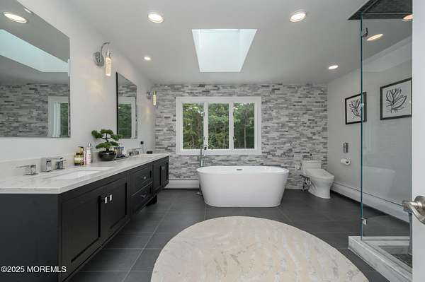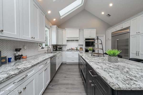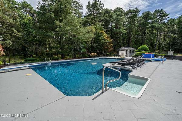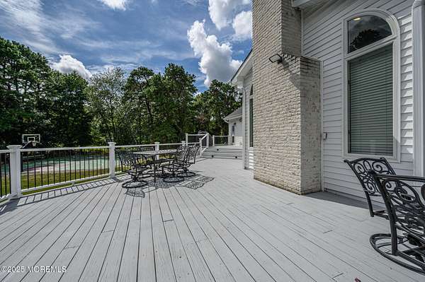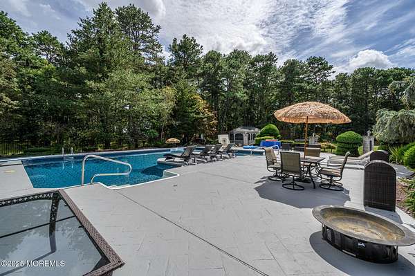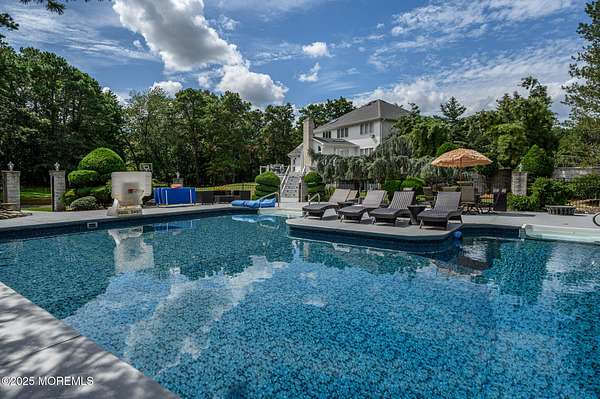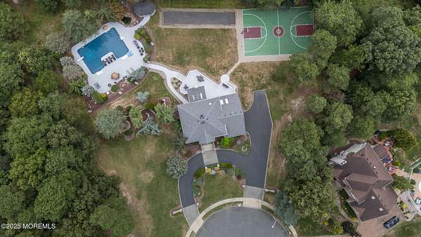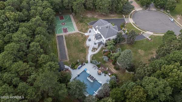 Stunning from the curb and remarkable within, this gorgeous 6 Bed 3.5 Bath Colonial with Master Suite, 2 Car Garage, Finished Walk-Out Basement and Resort-like Backyard is an entertainer's paradise inside and out. Boasting over 3000+ sq ft of finished living on 3 private acres in a quiet cul-de-sac, complete with In-Ground Pool, a regulation sized Basketball Court, horseshoe court, gazebo and more, just pack your bags and move right in! Stately circular driveway, brick front, double door entry, and grand 2 story foyer welcome you in to find a spacious and sophisticated interior with generous room sizes, luxury floors that shine, custom moldings, and plenty of natural light all through. Formal living room and elegant dining room make dinner parties a breeze. Gourmet Eat-in-Kitchen will impress any home chef, offering sleek SS appliances, gorgeous granite counters, ample cabinet + pantry storage, recessed lighting, soaring cathedral ceiling with skylights, and center island that is ideal for gathering. Serene family room features another cathedral ceiling that truly opens up the space, along with a cozy fireplace with floor to ceiling mantle with recessed lighting and large picture windows, bringing in tons of natural light. Down the hall, find 1 bedroom for accessible one level living, along with a convenient 1/2 bath and laundry room. Upstairs, find the main full bath along with 4 more generous bedrooms, inc the blissful Master Suite. MBR boasts its own walk-in closet and luxe ensuite bath with dual vanity, stall shower, soaking tub and skylight. Finished walk-out basement adds to the package, offering a large rec room with wet bar, versatile bonus room, and private bedroom with attached full bath. Resort-like backyard features a deck, large in-ground pool with patio surround, oversized gazebo, peaceful koi pond, regulation sized basketball court, boccee court, and oversized 2 car garage for plenty of guest parking. The list of incredible features goes on! Don't miss out! Truly, a luxurious, Move-in-Ready MUST SEE!!