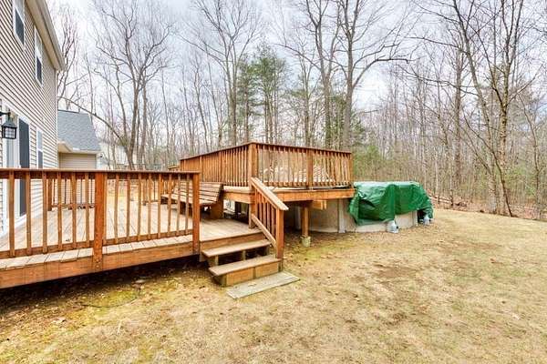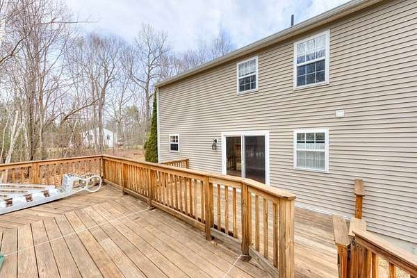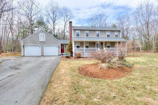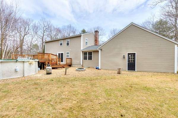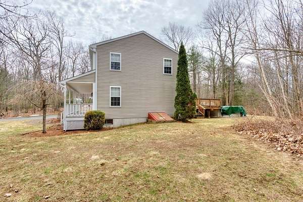 Welcome to "Blueberry Farms" a popular neighborhood which is home to this delightful sun-filled three-bedroom, two full bath colonial home situated on an oversized 1.84-acre lot. A home for all seasons with a cozy fireplaced living room, a generous eat-in kitchen with a newer slider that leads out to the large rear deck, private yard and pool. The first floor also boasts a huge mudroom, a formal dining room, and a full bath with laundry hookups. The second floor has three generous sized bedrooms w/ plenty of closet space including the front to back primary bedroom with double closets and private access to the full bath. This home is privately situated far back from the road and has a farmer's porch to overlook the large front yard and an oversized rear deck for entertaining by the pool. The main portion of the house was built in 1997. The two-car garage, mudroom and paved driveway were added in 2005. The large dry basement offers the opportunity for additional living space.