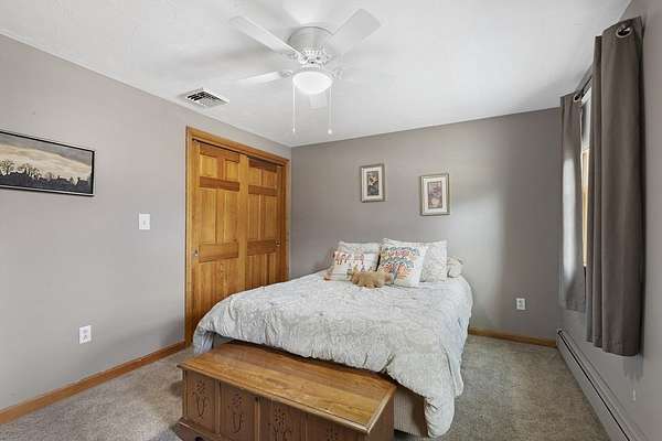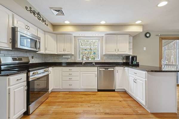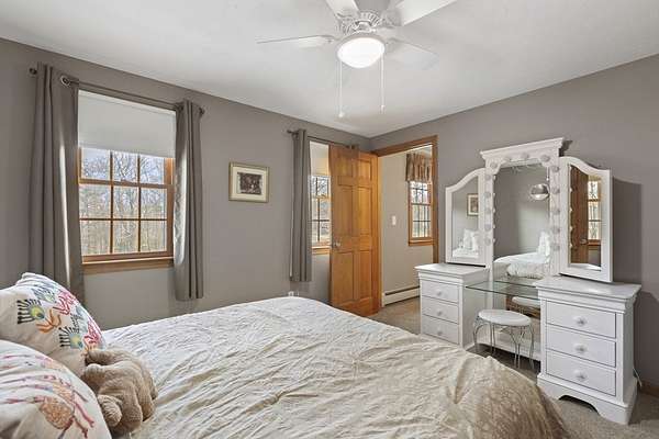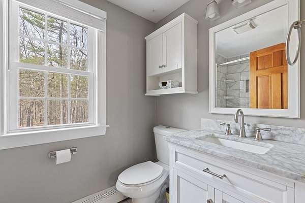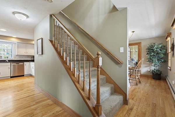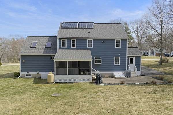 Picture perfect colonial on 2 well landscaped acres in a fantastic neighborhood awaits new owners. Relax on the farmers porch or watch the Red Sox on the 3 season porch. You'll love the side entry to the tiled floor mud room, where you can leave your rainy day shoes. The open floor plan is perfect for entertaining in the updated kitchen with granite counters & hardwood floors (all stainless steel appliances included). Vaulted ceiling family room has propane stove for cozy nights. Dining rm. & living rm. also have hardwood floors. Lower level has heated bonus rm. Primary bedroom has walk-in closet, 2 additional good sized bedrooms, & both bathrooms are beautifully updated. Many improvements include owned solar panels for energy efficient hot water, heat/ AC heat pump, Buderus Boiler & new oil tank, all 2nd floor windows replaced, roof shingles newer & built in generator. Enjoy a stroll around the Whitin Res & state forest hiking trails. Close to rts 395 & 146. Welcome home!