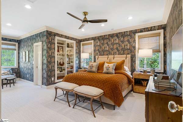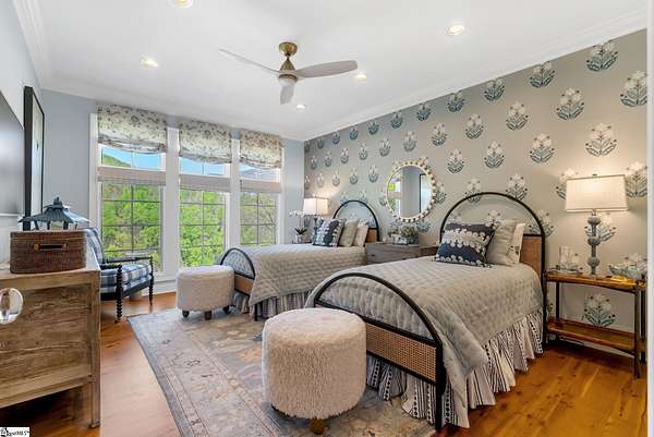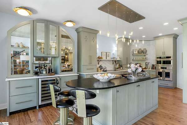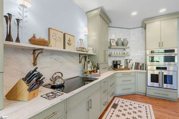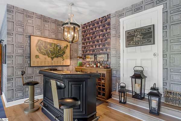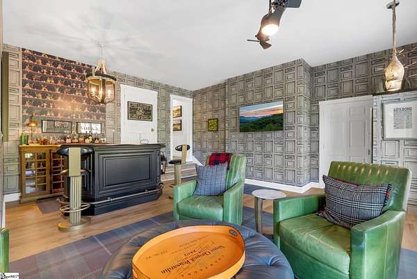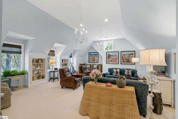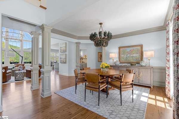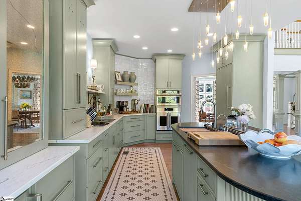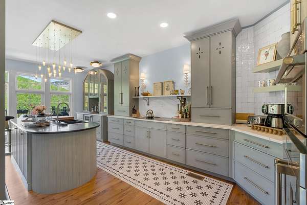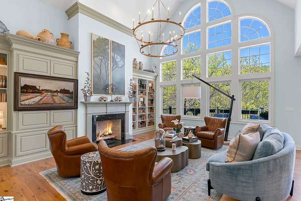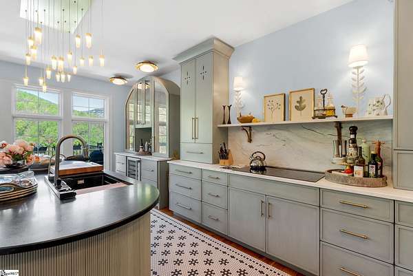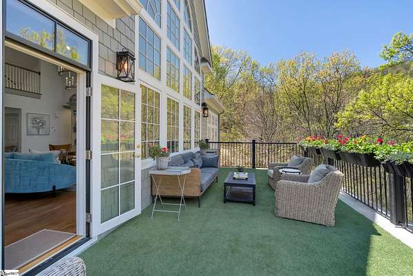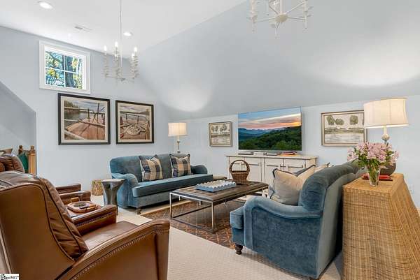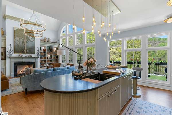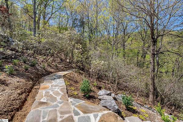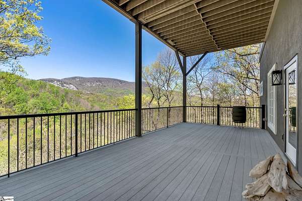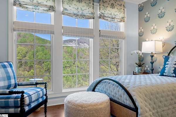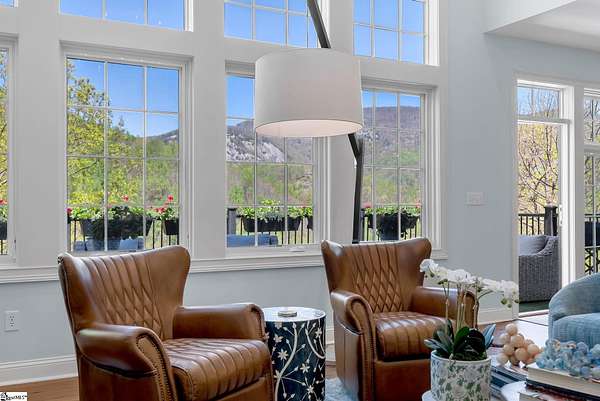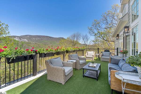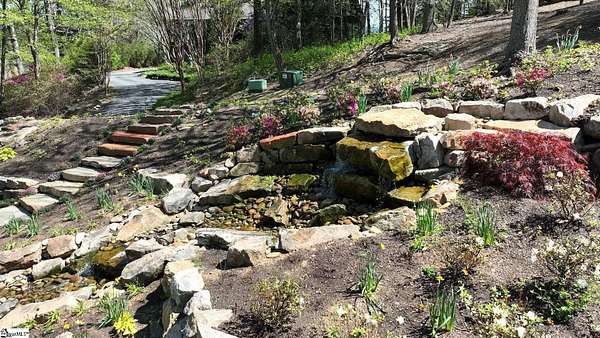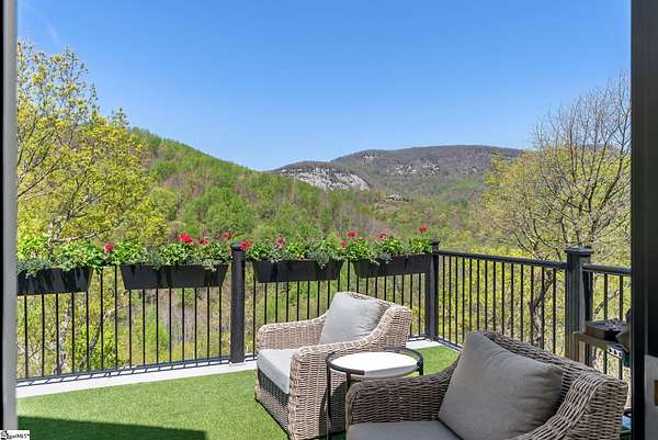 Perched at approximately 1,700 feet elevation, this beautifully reimagined mountain residence welcomes you with a light-filled, open floor plan and expansive views of sculptural rock formations and a natural cascading waterfall—an exceptional backdrop rarely found. The views extend from northwest to northeast, with layered long-range vistas taking center stage the moment you step through the front door. The adjoining Chestnut Ridge Preserve enhances the sense of privacy, offering an unspoiled natural setting behind the home. At the heart of the residence, the newly installed chef’s kitchen by Mason Elliott Designs was thoughtfully created for entertaining & effortless everyday living. Custom cabinetry crafted in High Point, NC, features a durable baked-on finish for low-maintenance performance. Quartz countertops with the timeless look of soapstone & low-maintenance durability pair beautifully with LG Monogram Pro appliances, including an induction cooktop with downdraft, paneled refrigerator, 5-in-1 French door oven, wine fridge, beverage drawers, & a Lefton waterfall sink with a dedicated glass-washing station. Deep storage drawers, custom spice & cutlery inserts, a thoughtfully designed coffee & tea bar, & a striking crystal light fixture complete this exceptional kitchen. Every interior and exterior surface has been repainted in a soft, serene palette inspired by the surrounding landscape. High-end designer lighting from Visual Comfort, John Richard, Global Views, Michael Aram, and Curry & Co. has been installed throughout, complemented by new LED recessed lighting, updated ceiling fans, wall sconces and bathroom mirrors. Select spaces feature designer wallpaper, adding curated, art-like texture & depth. The 2.3-acre property was transformed by a landscape architect and Red Elm Landscaping, creating exceptional curb appeal. New flagstone & terraced hardscaping, retaining walls, & meandering stone steps connect the drive to Eagle Rock Road with both function & beauty. A newly added front-yard waterfall feature, bubbling stream, & seasonal winter views of a natural waterfall create year-round visual interest. The grounds are richly planted with 75 rhododendrons, more than 200 spring and summer perennial bulbs, & flowering shrubs selected to provide continuous blooms from early spring through late fall. Inside, generously sized rooms are complemented by abundant storage & refined architectural details throughout. This thoughtfully designed home offers 3 bedrooms, 4 baths, a large office, loft space, & a spacious den, creating flexibility for everyday living & entertaining. The upgraded primary suite is a true retreat, featuring a trey ceiling, new soaking tub, private water closet, & stunning long-range mountain views. The large laundry & mudroom has been renovated with custom built-ins, & a striking composite walnut butcher block workspace. The oversized garage has been enhanced with arched doors, a pergola, utility sink, & an EV charger. Below, the once unfinished basement has been transformed into a recreation space featuring a golf simulator, white oak LVP, bar area & storage, adjacent to a workshop complete with a built-in workbench. Additional upgrades include a new HVAC unit, encapsulated crawl space with heavy-duty vapor barrier and radon mitigation, leaf guard gutters with drainage piping, upgraded smoke & CO2 detection systems, replaced thermostats, enhanced door hardware, renovated bathrooms, newly installed Berber carpet upstairs, & extensive removal of damaged trees to further open the landscape & enhance views. A designated outdoor area for pet use offers convenience & function within the natural surroundings. This is a rare opportunity to own a meticulously upgraded mountain retreat where luxury, craftsmanship, & natural beauty come together in exceptional harmony. A Club membership at The Cliffs is available with this property giving you access to all seven communities.