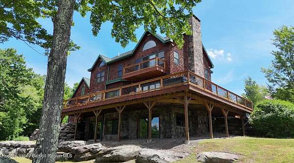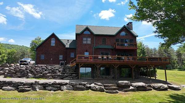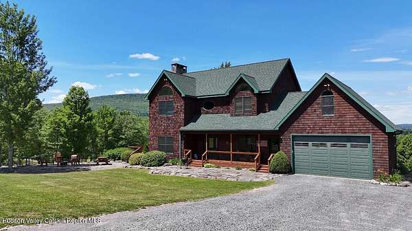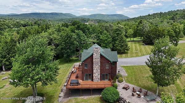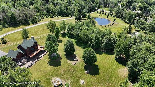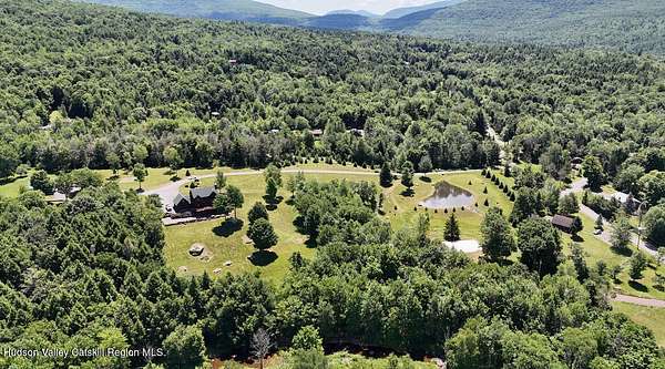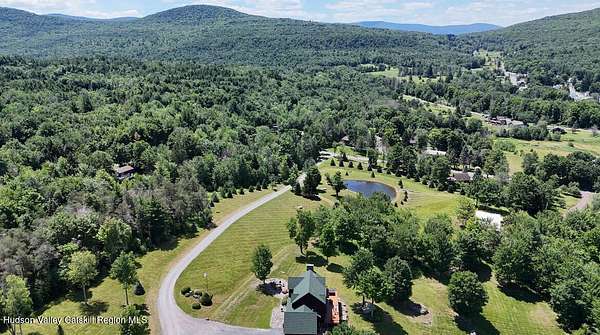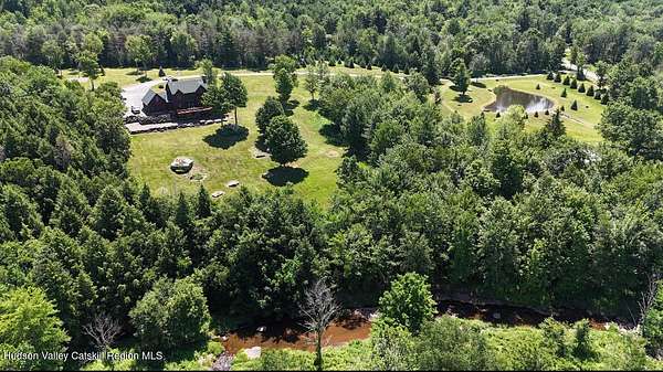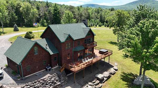 The Mountains Are Calling and I Must Go.'' P.S., I plan to be VERY comfortable when I get there!Welcome to 33 Elm Ridge - the best of the Catskills - the ultimate in mountain opulence. This shingled contemporary makes quite the impression on its incredible setting; 3,900sqft of living space spans over 3 floors which include 5 bds, 3.5 bths & a walk-out basement that's ready to party. It's set on more than 12 acres of beautiful country that features a crystal-clear pond, stream frontage, towering trees, & breathtaking mountain views; this is a kingdom you'll never tire of. There's a 2-story heated pole barn that's ready to be a workshop & waiting to become a guest house, a deck, a porch, and a firepit patio. Wood floors flow underfoot as you walk through the open floor plan. In the living room: a wall of glass to let in the light and views, a beautiful native (to the property!) stone fireplace, and a ceiling lined with reclaimed wood that warms it all. The kitchen boasts custom hickory cabinets, granite countertops and a breakfast bar. Sliding glass doors in the common spaces lead out to the deck where there's a bar, hot tub and outdoor shower. The home has a brand new propane on demand heating system, radiant heat and central air conditioning. Yes, you'll be VERY comfortable when you get here! A 3D Walkthrough Tour is available in the digital Lookbook or by request from the listing agent.