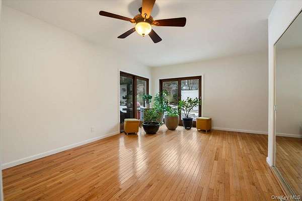 Set on 2.26 professionally landscaped acres in the Harborfields School District, this expanded ranch sits across the way of the Huntington Crescent Club golf course offering stunning views, privacy and space. The setting feels secluded and country-like, yet is conveniently close to shops and just minutes from Huntington Village. The property offers potential for subdivision, having been approved in the past, subject to reapproval by the Town. The freshly painted main home features Andersen windows throughout. Inside is a spacious chef's kitchen with Sub-Zero appliances, vaulted ceilings, dining area, and sliding doors to a patio with an outdoor shower. A large living room with a fireplace, charming hardwood floors throughout, three bedrooms including a primary ensuite, and two and a half baths complete the space. A full unfinished basement with laundry as well as an outdoor entrance provides ample storage and future potential. A legal, handicap-accessible accessory apartment adds exceptional value, offering one bedroom, one full bath, an updated kitchen, living room, laundry and dining area. A very private wooded fenced in yard and professional front and rear landscaping make this a rare and special offering.