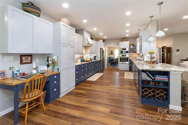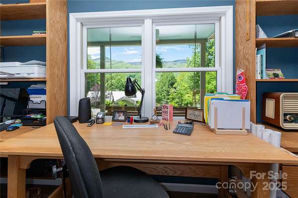 Nestled at an elevation of 3,500 ft on a state-maintained road, this extraordinary home showcases the craftsmanship of its owner-a master carpenter and licensed contractor. Offering beautiful views of Mt. Lyn Lowry, the residence boasts custom cabinets & built-ins, ensuring both charm and functionality. A whole-house Generac generator provides peace of mind, while the property, which adjoins the Blue Ridge Parkway, enjoys the freedom of no HOA and light deed restrictions. The interior includes two primary suites and both have walk in showers. There is a bonus room, & den/office. The private screened-in back porch features a Gas FP and outdoor patio with a fire pit invite relaxation amidst nature. Culinary enthusiasts will appreciate granite countertops, a gas cooktop, and a pot filler. For hobbyists, the 35' x 35' climate controlled workshop with a half bath. Double car garage, therefore creating the perfect balance of luxury and practicality in this unique mountain retreat.