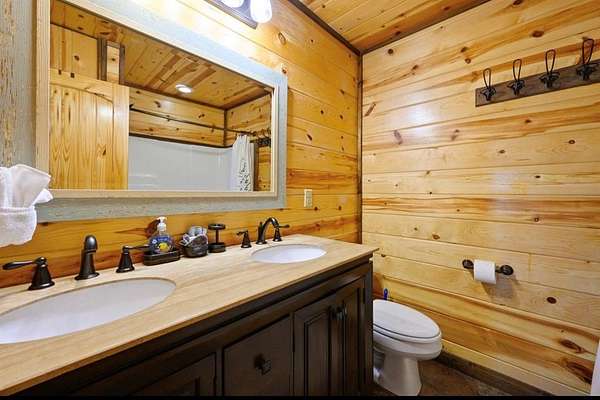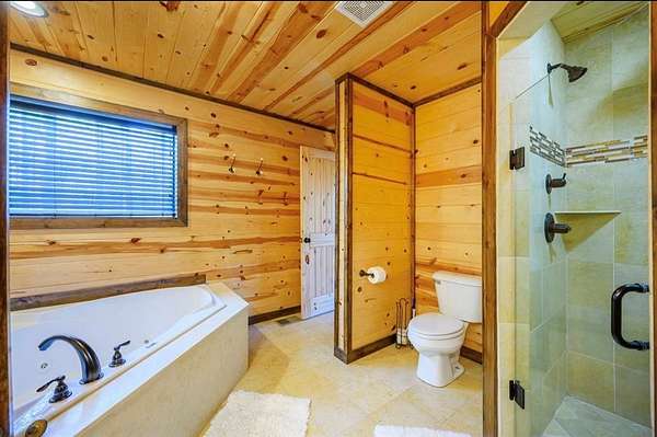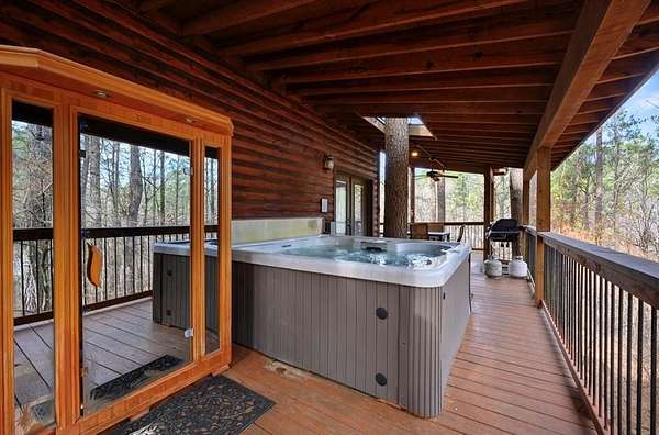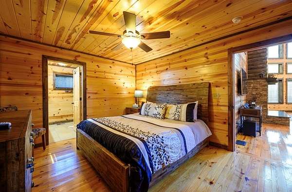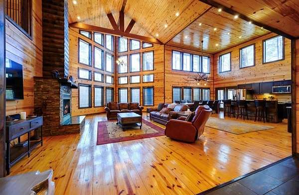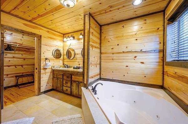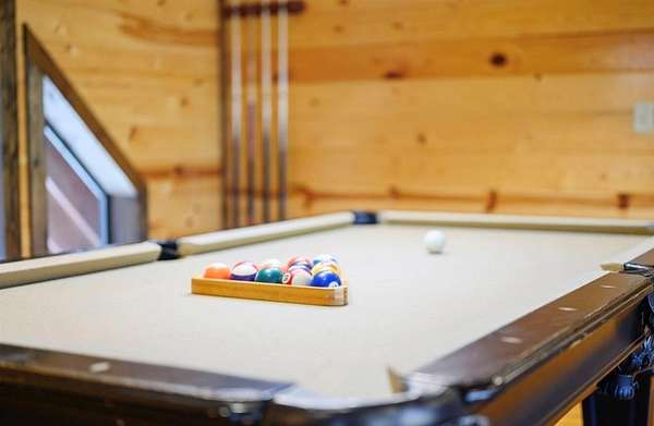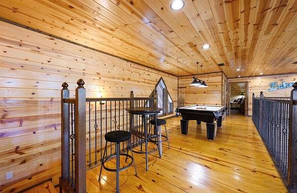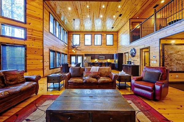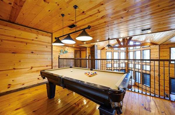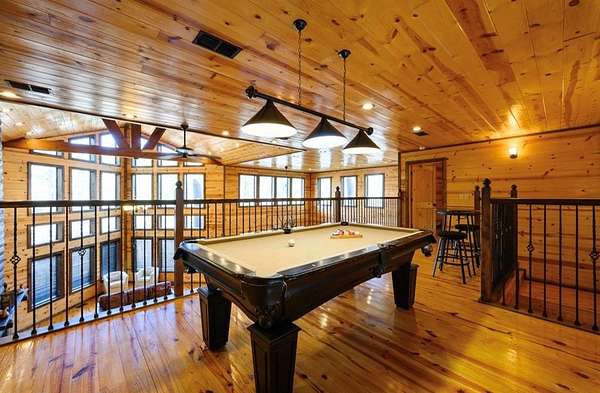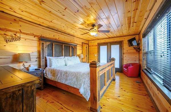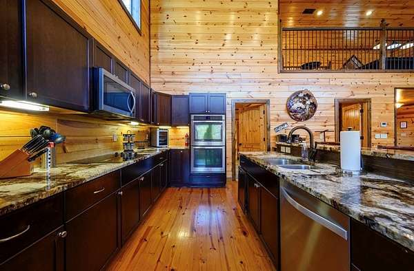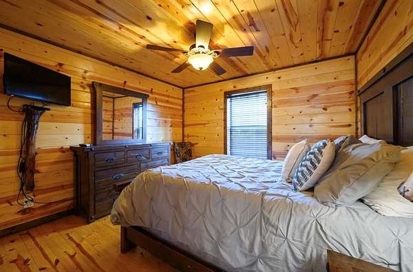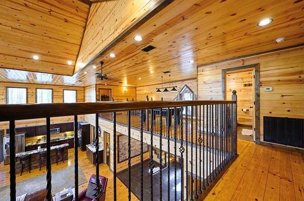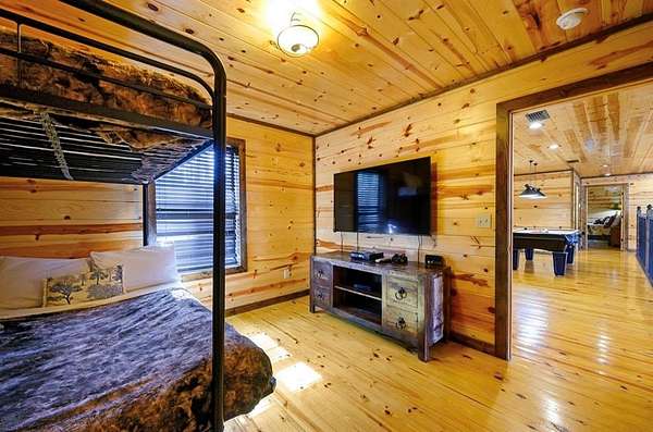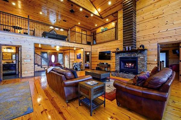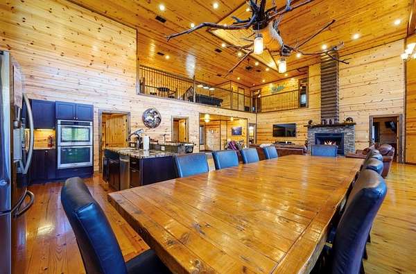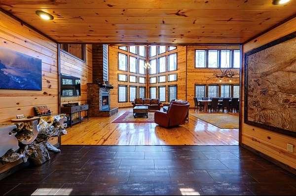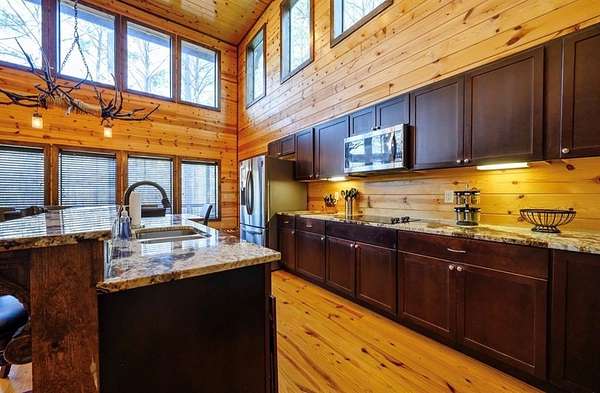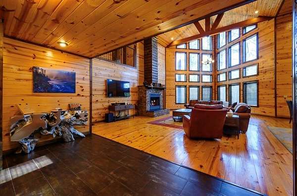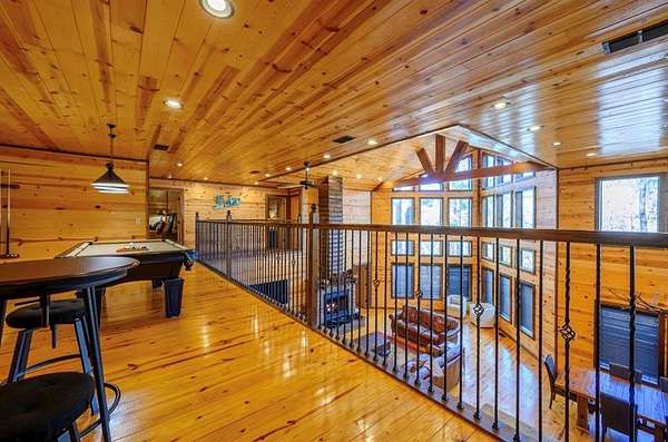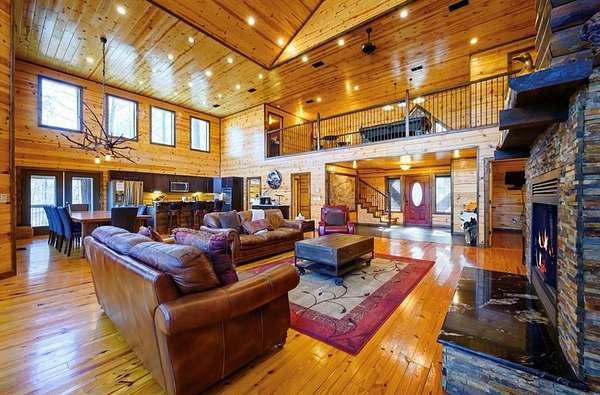 Welcome to Tree Top Point Lodge - a striking retreat set on over 2 private acres in Timber Creek Trails Phase 3. Offering more than 3,400 square feet of living space, this 4-bedroom + bunk room, 3.5-bath cabin can easily function as a 5-bedroom, as a fifth bedroom space is already in place and simply awaiting final finish-out. Designed for gathering, entertaining, and creating unforgettable memories, this property offers both flexibility and opportunity. From the moment you enter, soaring ceilings and expansive windows fill the open living area with natural light while showcasing peaceful treetop views. The spacious layout flows seamlessly from the inviting living room with stone fireplace into a beautifully appointed kitchen featuring granite countertops, double ovens, stainless appliances, and an oversized dining area that comfortably seats a crowd. The main level features two king suites with spa-inspired bathrooms, including granite and marble finishes, rain-style showers, and a relaxing two-person Jacuzzi tub in one suite. Upstairs you'll find two additional queen bedrooms, a full bath, plus a loft entertainment space complete with pool table and a separate bunk room - ideal for hosting multiple families or large groups. Outdoor living is just as impressive with a large covered deck, hot tub, dry sauna, propane grill, outdoor fire pit, and circular driveway providing easy access and ample parking. What truly elevates this property is the included adjacent lot - offering the rare opportunity to build an additional cabin and expand your rental portfolio or create a multi-cabin retreat. I've also included some potential cabin concepts for inspiration - always exciting to explore the possibilities.