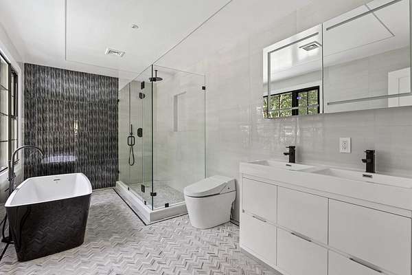 Welcome to a rare opportunity to own a fully renovated and extended estate-rebuilt from the studs up and reimagined for modern luxury in the heart of one of Long Island's most coveted neighborhoods. Set on a beautifully manicured 2 acre lot, this 6-bedroom, 5.5-bathroom smart residence combines sophisticated design, premium finishes, and cutting-edge amenities, offering a seamless blend of elegance. Every inch of the home reflects quality and intention-from the radiant heated floors throughout the entire main level and every bathroom to the sleek, designer fixtures and finishes throughout. The gracious first floor features a private guest suite with a separate entrance, ideal for extended family and guests. The chef's kitchen is the true centerpiece-a culinary dream outfitted with a massive center island, top-tier stainless steel appliances, including a 48" Bertazzoni induction range with double ovens, oversized refrigerator and freezer, dual dishwashers, custom cabinetry, beverage drawers, and thoughtful built-ins-all designed to inspire both intimate dinners and large-scale entertaining. The second floor is home to a luxurious primary suite with a spa-inspired en-suite bath, radiant heated floors, oversized closet, and tranquil views of the property. Three additional spacious bedrooms upstairs offer generous closets, and large windows that flood the rooms with natural light. With a dedicated second-floor laundry area, convenience meets everyday function for busy households. The fully finished basement features its own private exterior entrance and offers an abundance of versatile space, including a wine cellar, gym, recreation, full laundry room, and more- The home's brand-new exterior features include a new roof, striking black energy-efficient windows, and a large Trex deck that opens from the kitchen to your own private oasis complete with an in-ground pool. Every system has been updated-new electrical, plumbing, floors, HVAC, and insulation-ensuring true turnkey luxury living. This is more than a home-it's a statement. A rare offering of timeless craftsmanship and modern design in one of the most distinguished enclaves.