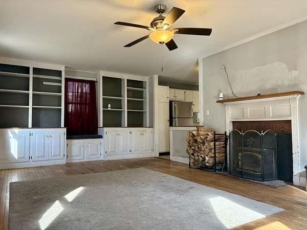 Escape to the tranquility of country living in this charming 3-bedroom, 1.5-bath home. Large windows throughout this sun-filled sanctuary invite an abundance of natural daylight, creating a warm, bright, and inviting atmosphere. Gather around the cozy fireplace insert in the living room for a relaxing evening, perfect for creating cherished memories with family and friends. The primary bedroom is conveniently located on the main level, offering ease and comfort for everyday living. The oversized 2-car garage is more than just a place for vehicles; it is a craftsman's dream. It features extensive extra space for a workshop or storage, plus overhead storage to keep everything organized. The expansive, open lot provides a perfect canvas for outdoor living. Enjoy the additional benefit of the small unidentified creek that meanders through this 1.5 acre outdoor oasis.FMI: call/text Bobbi at 207-364-4670