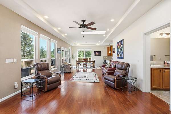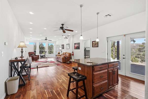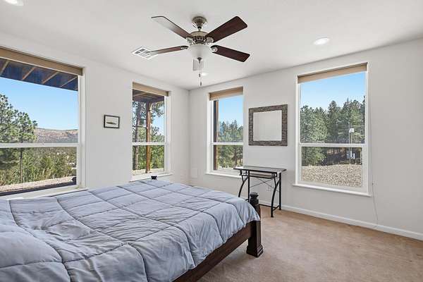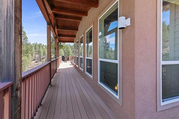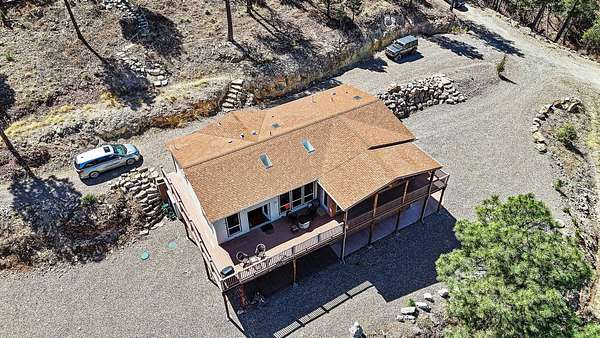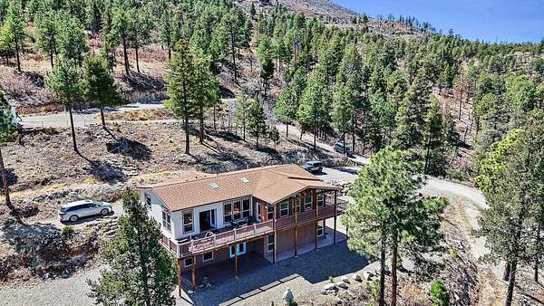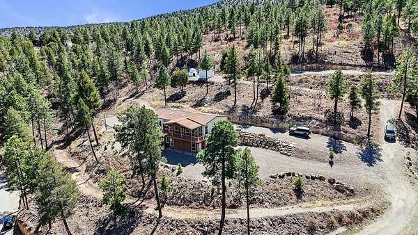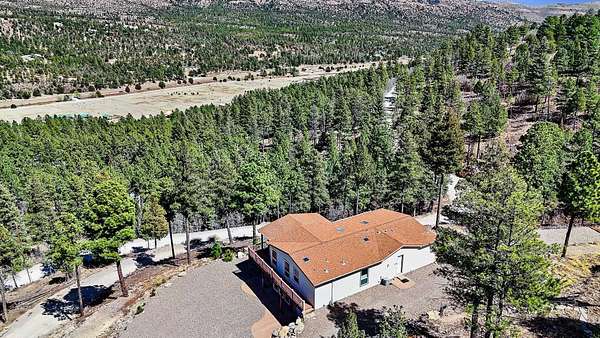 Set within the Dark Skies enclave of Mayhill/Cloudcroft, this exceptional 3.4-acre mountain estate offers a rare opportunity to own a purpose-built astronomy retreat bordering the natural beauty of the Lincoln National Forest. Designed for those who value privacy, space, and the extraordinary, this residence seamlessly blends refined mountain living with a truly unique stargazing experience, taking full advantage of one of the region’s most coveted dark sky environments. The lower level welcomes you with ground-level entry and a fully self-contained living space, ideal for guests or extended stays, featuring a secondary kitchen, private office, two bedrooms, a full bath, and a spacious gathering area perfect for entertaining or private relaxation. A covered patio extends the living experience outdoors, offering a peaceful setting surrounded by forest. The upper level reveals the heart of the home, where an inviting living area flows effortlessly into a well-appointed kitchen with granite countertops and generous workspace. A guest bedroom and full bath provide comfort and convenience, while the primary suite offers a private retreat complete with an en-suite bath, expansive walk-in closet, radiant heated floors and tiled walk-in shower. An expansive deck off the main living area captures the essence of mountain living, ideal for quiet mornings, sunset views, and evening gatherings under crisp, star-filled skies. A defining element of this property is its dedicated observatory infrastructure, including both a dome and roll-off structure for telescopes — a rare and highly specialized feature designed for serious enthusiasts and those seeking an unparalleled connection to the night sky. Encompassing 3.4 acres, the property offers a sense of seclusion and scale that is increasingly difficult to find, with direct access to outdoor recreation and the surrounding forest landscape. Opportunities to acquire a property of this caliber, combining acreage, architectural flexibility, and purpose-built astronomy amenities, are exceptionally limited in the Cloudcroft/Mayhill area. This is more than a home; it is a destination, a retreat, and an experience unlike any other. Home also features an in house vacuum and 40 KW whole home generator w/500 gallon propane tank. Don't miss out to view this property in person, Schedule your showing today and check out the 3D virtual tour! https://my.matterport.com/show/?m=ExEQVJkeqKZ&mls=1