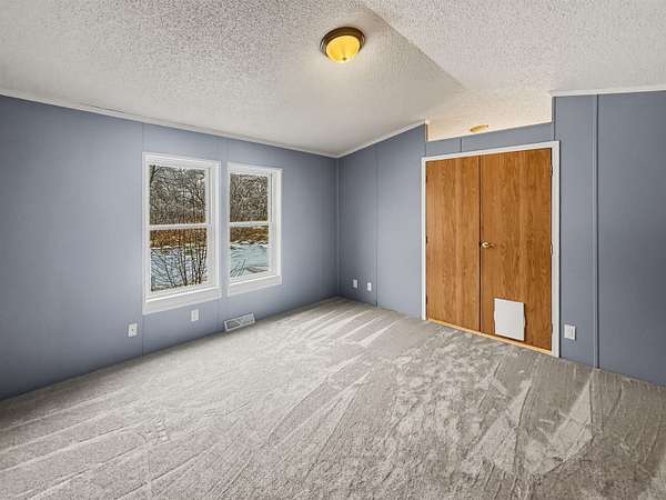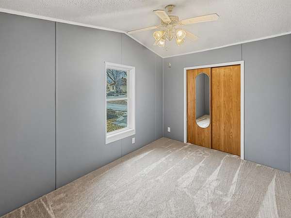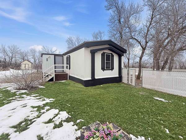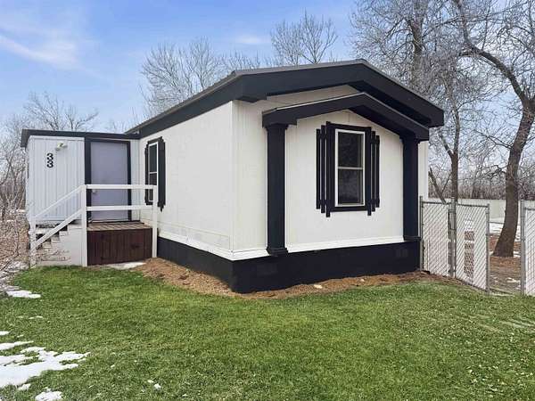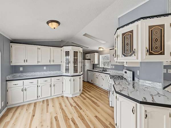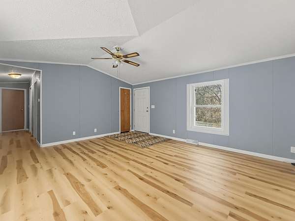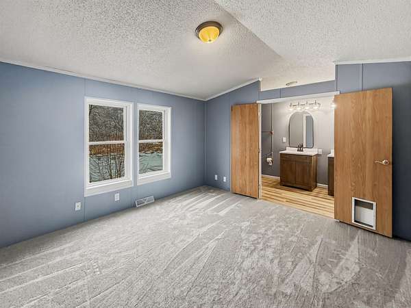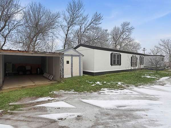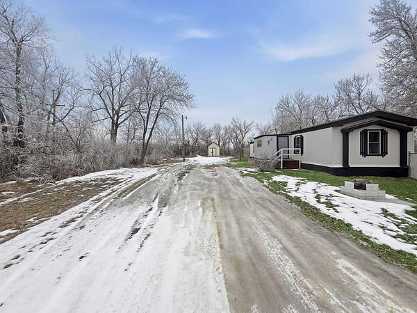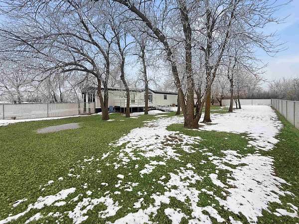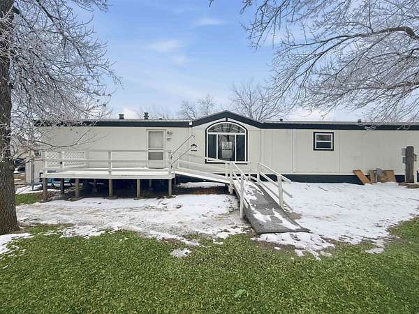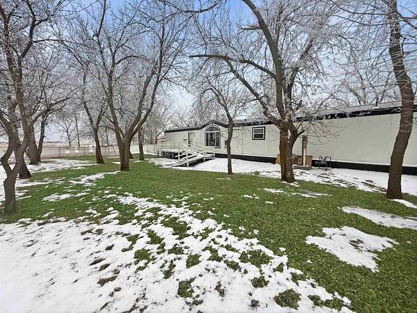 Nearly two acres of land and plenty of privacy come with this updated 3-bedroom, 2 bathroom manufactured home. Set on 1.79 acres, the property offers mature trees, open yard space, and a large fenced area that works great for pets. Inside, several updates have already been completed including new flooring throughout, new vanities, toilets, appliances, and a new furnace installed in 2026. The living room connects easily to the dining area and kitchen, creating a comfortable layout for everyday living. The kitchen offers generous cabinet storage and sits near the laundry area, conveniently located between the kitchen and primary bedroom. The primary bedroom features dual closets and a private bathroom with dual vanities and a shower, with space available if someone wanted to add a bathtub in the future. Two additional bedrooms and a full bathroom are located on the opposite side of the home. With a metal roof, low property taxes, and nearly two acres of land, the property offers space to enjoy the outdoors while still leaving room to make it your own over time.