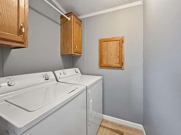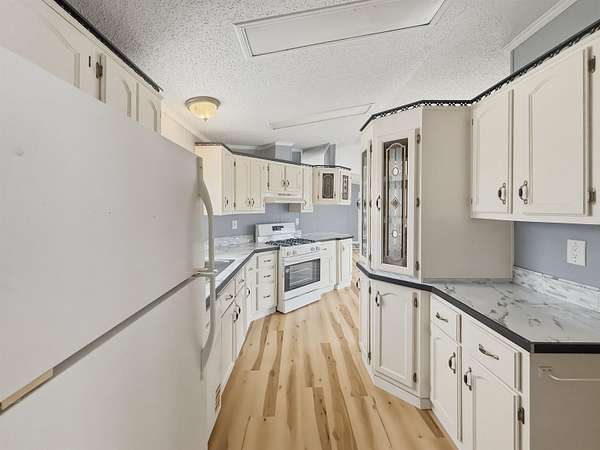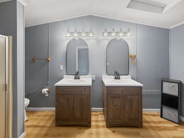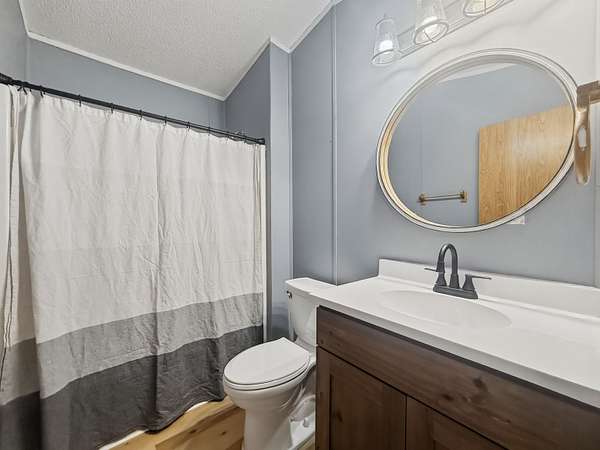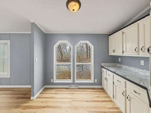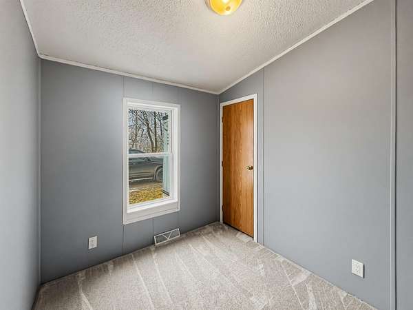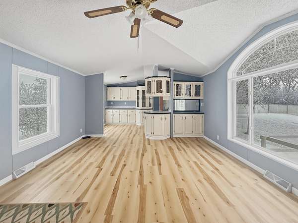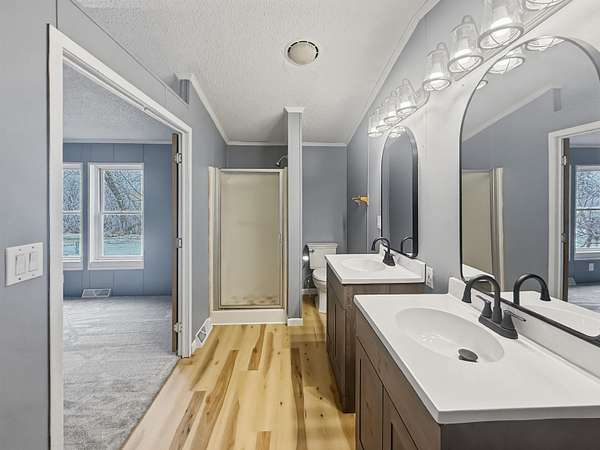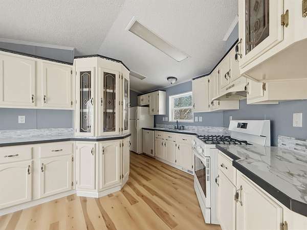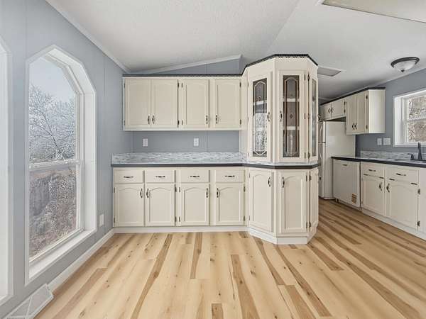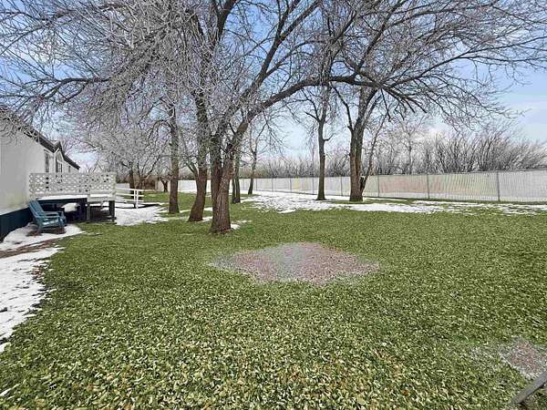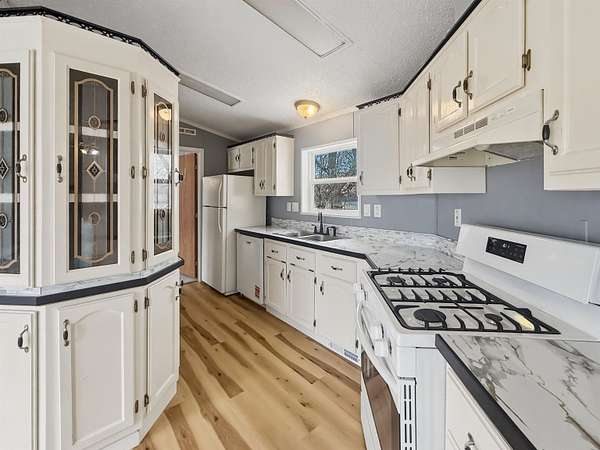 Nearly two acres of land and plenty of privacy come with this updated 3-bedroom, 2 bathroom manufactured home. Set on 1.79 acres, the property offers mature trees, open yard space, and a large fenced area that works great for pets. Inside, several updates have already been completed including new flooring throughout, new vanities, toilets, appliances, and a new furnace installed in 2026. The living room connects easily to the dining area and kitchen, creating a comfortable layout for everyday living. The kitchen offers generous cabinet storage and sits near the laundry area, conveniently located between the kitchen and primary bedroom. The primary bedroom features dual closets and a private bathroom with dual vanities and a shower, with space available if someone wanted to add a bathtub in the future. Two additional bedrooms and a full bathroom are located on the opposite side of the home. With a metal roof, low property taxes, and nearly two acres of land, the property offers space to enjoy the outdoors while still leaving room to make it your own over time.