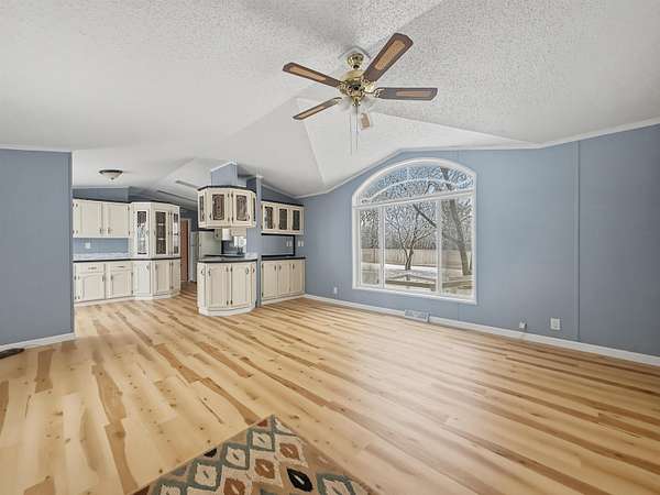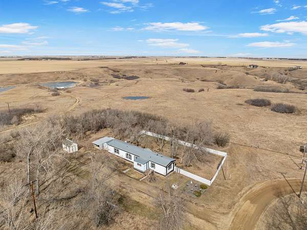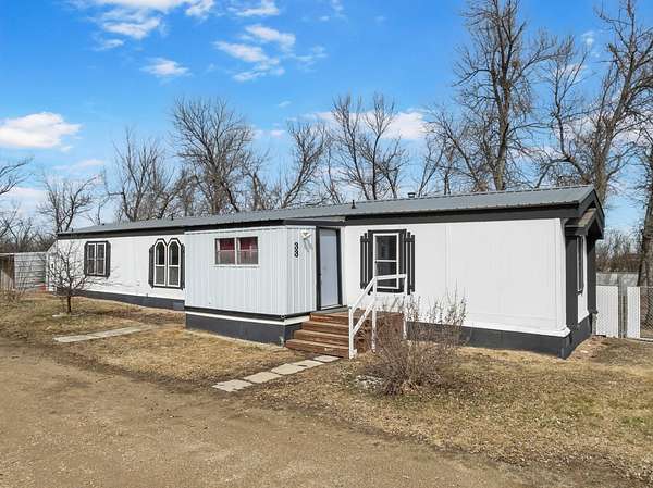 Nearly two acres of land and plenty of privacy come with this updated 3-bedroom, 2 bathroom manufactured home. Set on 1.79 acres, the property offers mature trees, open yard space, and a large fenced area that works great for pets. Inside, several updates have already been completed including new flooring throughout, new vanities, toilets, appliances, and a new furnace installed in 2026. The living room connects easily to the dining area and kitchen, creating a comfortable layout for everyday living. The kitchen offers generous cabinet storage and sits near the laundry area, conveniently located between the kitchen and primary bedroom. The primary bedroom features dual closets and a private bathroom with dual vanities and a shower, with space available if someone wanted to add a bathtub in the future. Two additional bedrooms and a full bathroom are located on the opposite side of the home. With a metal roof, low property taxes, and nearly two acres of land, the property offers space to enjoy the outdoors while still leaving room to make it your own over time.