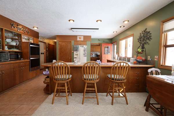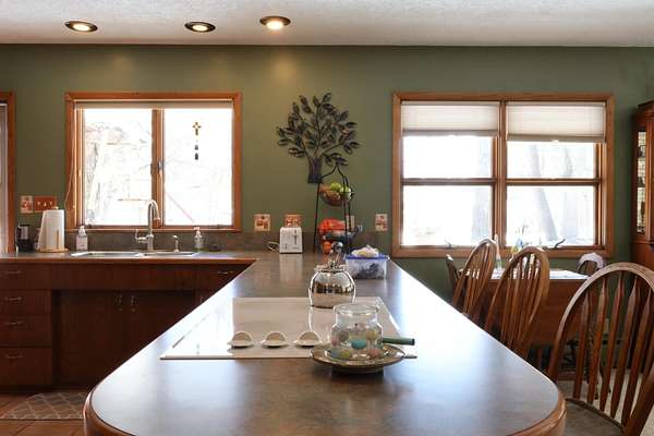 Absolutely Stunning Gem nestled in Manor Circle in Estherville. Located on 3 lots totaling 6.22 acres that flow all the way down to the river. This beauty is literally an acreage located within city limits with the benefit of City water and sewer. The house features 3 bedrooms as well as a 4th non-conforming bedroom in the basement along with 3 bathrooms with one being an ensuite in master bedroom. Attached 2 car garage on the house and an additional 3 car garage in the backyard. Full woodworking shop in the basement! Built in bar and large family room in basement along with a radon mitigation system. Newer boiler heat with 3 zones along with 2 central air units. Spacious kitchen with large pantry and all appliances stay. Large deck that overlooks nature along with a large cement patio out back that has a great view of the homemade pond with waterfall for relaxing outdoor space to enjoy. Wonderful foilage and landscaping! Magnificent fireplaces on both levels. This home has too much to list and is move in ready!