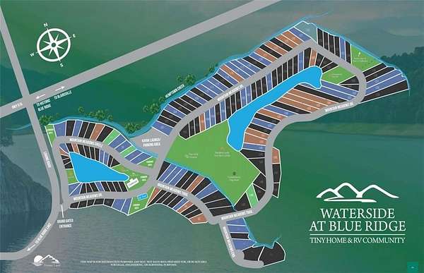 Don't miss this beautifully improved RV lot in the popular Waterside at Blue Ridge community. This premium lot is perfectly positioned directly across from the clubhouse, pool, playground, and community fire pit area, giving you some of the best access to amenities in the entire neighborhood. The lot features a wide concrete RV pad, full hookups (water, sewer, electric), and an easy pull-in layout suitable for larger RVs. Enjoy your own outdoor space with a picnic area, fire ring, and room for additional seating. Mature trees provide shade while maintaining an open, usable yard. Waterside at Blue Ridge is a gated community offering incredible amenities: stocked ponds, trout creek, swimming pool, bathhouses, laundry facilities, clubhouse, dog park, and multiple common areas. Short-term rentals are allowed, making this an ideal investment opportunity or a perfect personal getaway in the North Georgia mountains. Minutes to downtown Blue Ridge, Lake Blue Ridge, hiking, wineries & restaurants. This can be an income-producing RV lot, a second home, or a future tiny-home site. This property offers unbeatable convenience, scenic surroundings, and strong rental potential. *cable and wi-fi are included with the HOA fee*