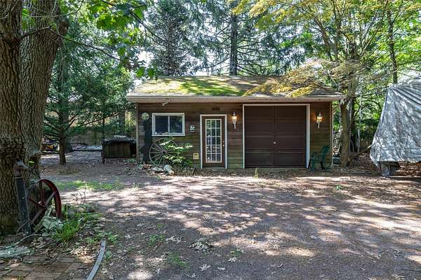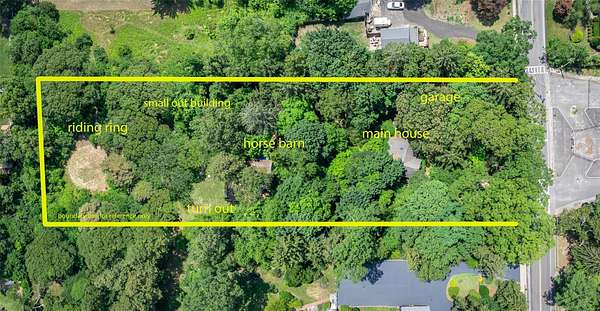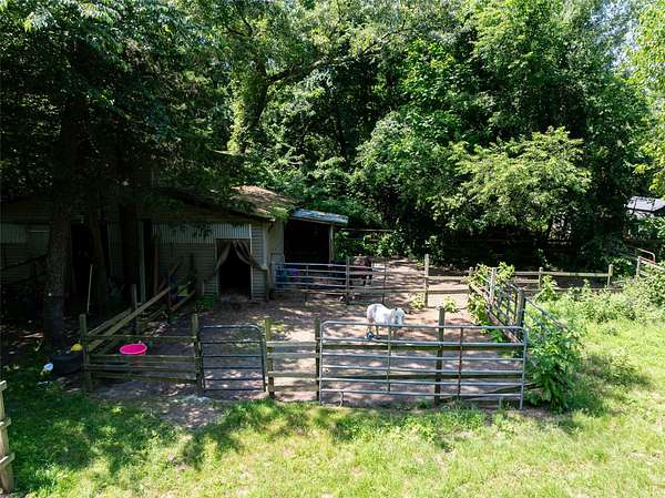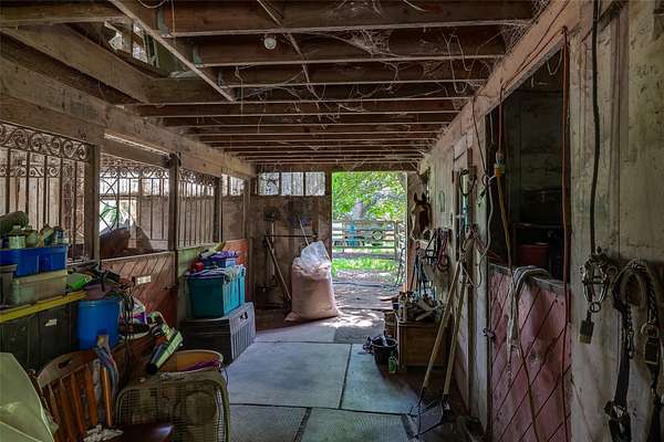 2 acres of horse property, kennel property, or land lovers. 6-stall center aisle barn and one stall in and out. The riding ring is large. The house is very private, set back, and very quiet.