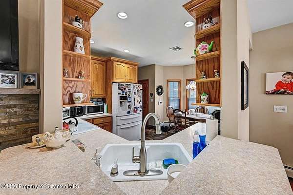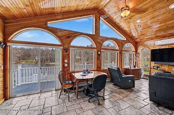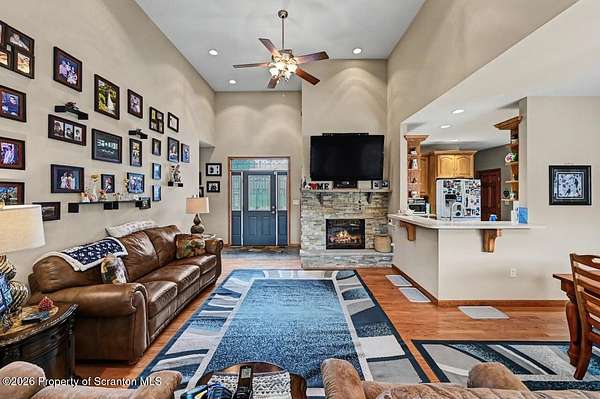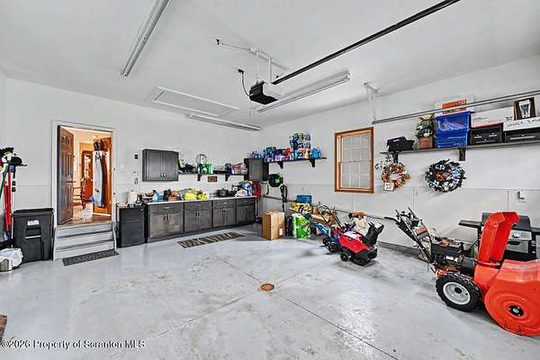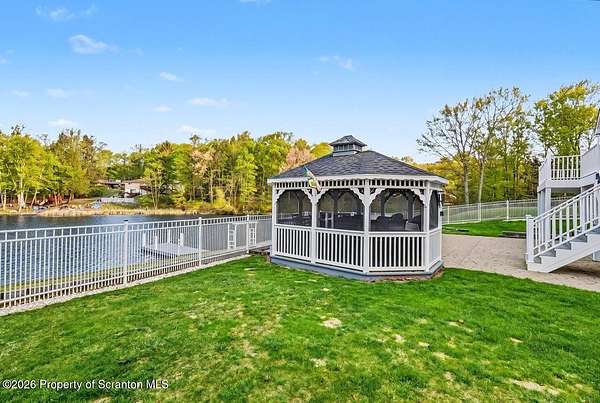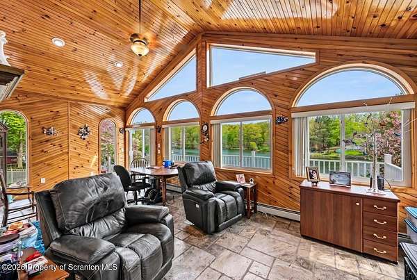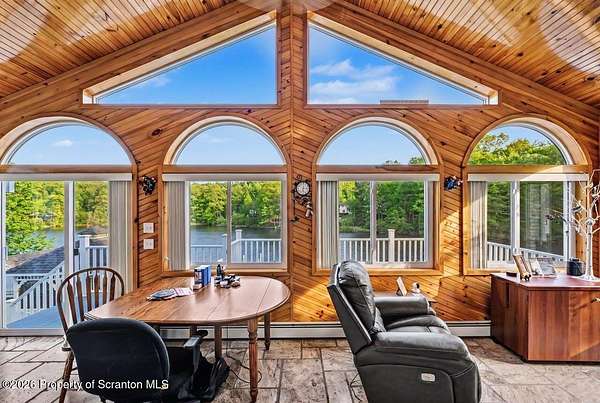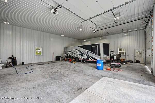 This modern Craftsman-style Ranch is beautifully situated on Lake Louis in Moscow, Jefferson Twp., offering peaceful waterfront living with thoughtful design throughout. The home features a spacious primary bedroom suite complete with a full private bath, a generous walk-in closet and direct access to the Family Room - perfectly positioned to take in serene lake views. The open-concept kitchen and dining area flows seamlessly into the living room, where a stunning stone natural gas fireplace creates a warm and inviting focal point. The home is equipped with central air, along with an additional ductless unit in the Family Room for enhanced comfort. Car enthusiasts and storage seekers will appreciate the attached 3 car garage, which includes electric drop=down stairs leading to a large overhead storage area. The semi finished lower level can be ideal for entertaining, offering kitchenette, and a bathroom, heated floor in complete lower level. The outdoor living is just as inviting, with a charming gazebo and a storage shed providing additional space for relaxation and gatherings. Step outside to enjoy a fenced backyard area overlooking the water, along with a spacious yard that provides plenty of room for outdoor activities, relaxation, and gatherings. A charming gazebo and storage shed further enhance the outdoor living experience. A standout feature of this property is the impressive 48 x 40 insulated pole barn offering approx 1750 sq ft of storage space. Equipped with a commode and sink and featuring 10 ft wide doors this versatile structure is ideal for storing vehicles, large enough for motorhomes, recreational equipment or creating the ultimate workshop.