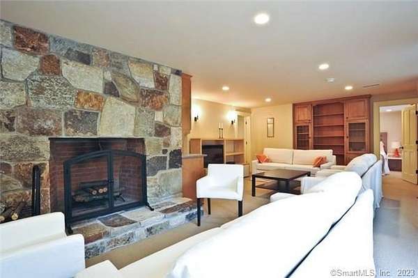 Mint/Move-in Condition! Private c. 2002 Colonial Clapboard 4+ bedroom home on a scenic dirt road along the Shepaug River and just down the road from Land Trust with trails. Heated Gunite Pool surrounded by endless summer hydrangea and 3 acres of level lawn bordered by the Moosehorn Brook. Magnificent design, 4 wood-burning fireplaces, beautiful wide-board softwood floors, over-sized living room, spacious dining room and chef's kitchen with striking polished hardwood center island. Upstairs, Primary En Suite Bedroom with lovely clawfoot tub, double sinks, large separate shower and spacious dressing room. Two more bedrooms share a charming hall bath. Finished lower level currently outfitted as a family room with French doors to a serene patio leading out to the pool, another en suite bedroom and two more finished flexible spaces. The perfect peaceful location, minutes from the centers of Roxbury and Washington. Must see!