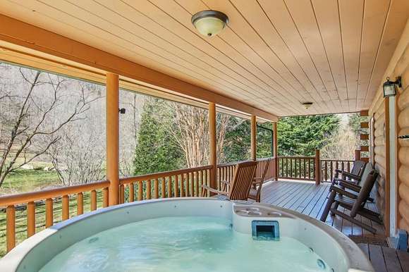 Opportunity awaits with this well-established rental cabin biz, just minutes from Bryson City--a charming mountain town brimming with outdoor adventure & family fun. This creekfront turnkey property features 3 cozy, log cabins, each offering 2 BR's, 1 bath, complete with covered hot tubs for the ultimate relaxation experience. Sq footage is all 3 cabins combined. The sale also incl a vacant 1.45-ac lot, pre-approved for septic, providing potential to expand the business with another cabin, tiny home, or campsite. Annual gross rental income exceeds $134K, with repeat guests enjoying the peaceful setting and convenient, year-round access on a paved, county-maintained road (no steep inclines). The property is nestled near the Smoky Mountains, offering easy access to Bryson City's vibrant downtown, known for its breweries, local eateries, and charming shops. With the Great Smoky Mountains National Park just a stone's throw away, visitors can explore waterfall-lined hiking trails at Deep Creek or enjoy watersports on one of the three rivers leading into the serene Fontana Lake. This is the perfect chance to own a turnkey business in one of the most sought-after outdoor destinations!