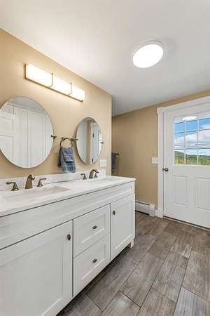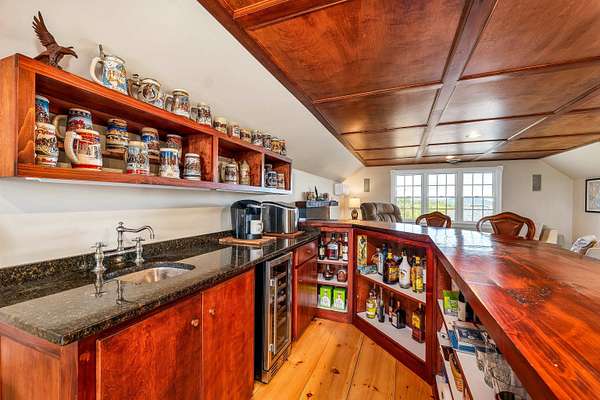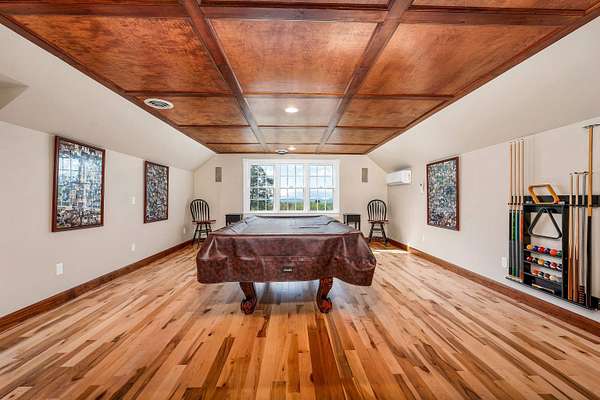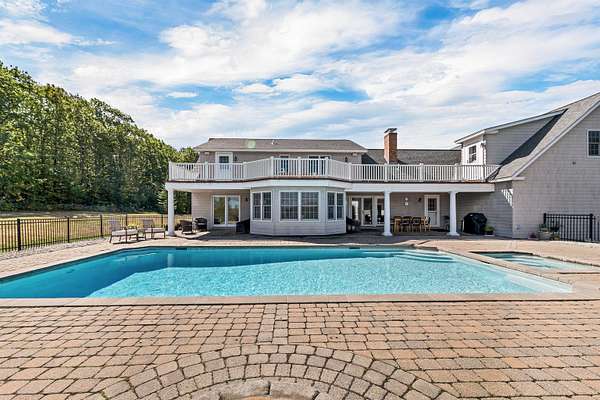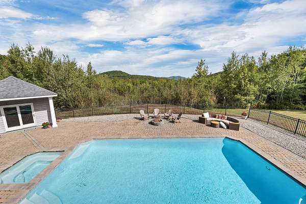 Fully refurbished throughout! Wolfeboro country estate prioritizing privacy and luxury with surrounding mountain views and an in-ground pool with cabana. This stunning home is set atop a quiet knoll surrounded by classic New England stone walls and 4.8 acres. The residence itself presents a thoughtful layout with four bedrooms, including the unique flexibility to choose a primary suite on either the first or second floors with updated master baths. The heart of the home is a brand-new, custom light-cherry kitchen, redesigned with quartz countertops, abundant custom cabinetry, and a spacious pantry. Upstairs, a dedicated entertainment level awaits with a full wet bar, separate media room, and game room. Three fireplaces—two propane and one wood-burning—provide warmth and ambiance, while multiple balconies and patios invite you to soak in the ever-changing scenery. Beyond the walls, your private oasis unfolds. The centerpiece is a heated Gunite pool and spa, reconditioned and new liner in 2025, accompanied by a convenient pool house with an outdoor shower. Practical luxury is ensured with a heated garage featuring new epoxy flooring, a whole-house generator, and comprehensive air conditioning, preparing you for year-round comfort. Every detail has been carefully considered, creating not just a home, but a peaceful escape from the ordinary.