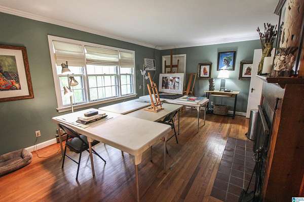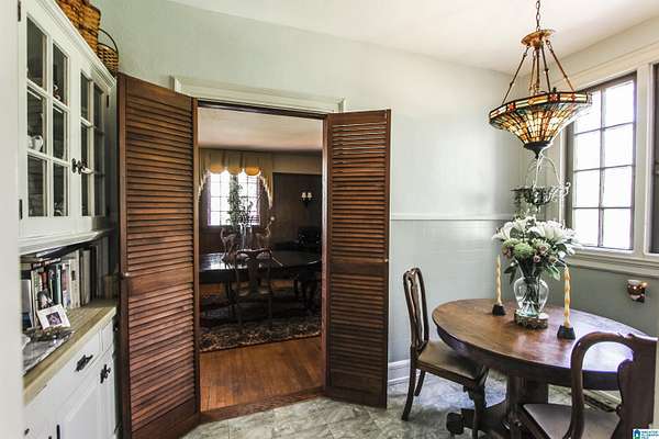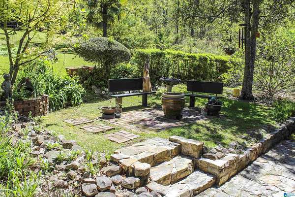 This unique property nestled in the hills of East Anniston offers 2 homes on about 1.65 acres in a very desirable location. The mature, lush landscape is a gardener's dream with gorgeous blooms, multiple pathways & seating areas. (Property gives off strong "The Secret Garden" vibes!) The main house has 4BR, 2BA & is an arts & craftsman style home w/ Tudor influences. Charming details include cypress paneled walls, doors & trim, original hand forged wall sconces, oak floors, and many well-preserved vintage features such as glass doorknobs. Master Suite upstairs has its own sitting area, big walk-in dressing room w/built-in storage & en-suite bath w/ timeless honeycomb tile flooring. There is a huge front terrace & a phenomenal screened in back porch where you can relax & enjoy the peaceful setting. Basement offers storage & walk-out level Rec Room. Guest House/Studio has 2BR, 2BA, LR, DR, Kitchen, Study & a big Bonus Room/Library upstairs. Perfect in-law suite or BNB! Call today!!!