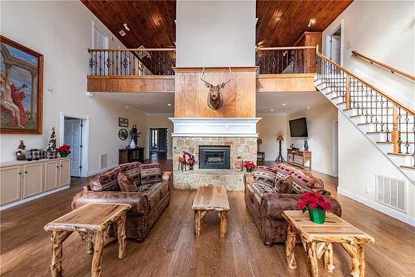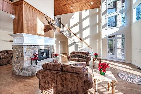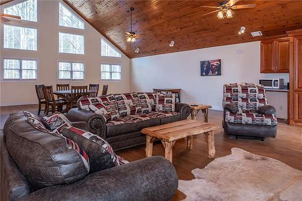 Priced To Sell!!! ($350,000 under appraisal). Stunning Riverfront Estate in the North Georgia Mountains! Completely renovated and beautifully furnished, this exceptional 4-bedroom, 4.5-bath estate is your perfect mountain escape-ideal as a private retreat, second home, wedding venue, or income-producing Airbnb. Comfortably, accommodating up to 20 guests, this spacious property sits on 5 pristine acres and boasts over 590 feet of scenic Etowah River frontage. Enjoy wraparound porches, a large outdoor stone firepit, a relaxing hot tub, and a BBQ grill and smoker. Inside, you'll find multiple fireplaces, a sprawling loft entertainment area, and a game room featuring a pool table and dart board-perfect for entertaining family and friends. Step outside for direct river access-perfect for fishing, tubing, swimming, and floating. With ample parking for 20+ vehicles and a 3-car garage, hosting large gatherings is a breeze. Conveniently located near Dawsonville, Dahlonega, local wineries, and shopping. Best of all, this home is being sold fully furnished-just bring your bags and start living the riverfront dream.
