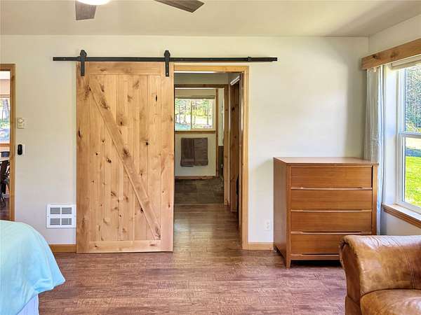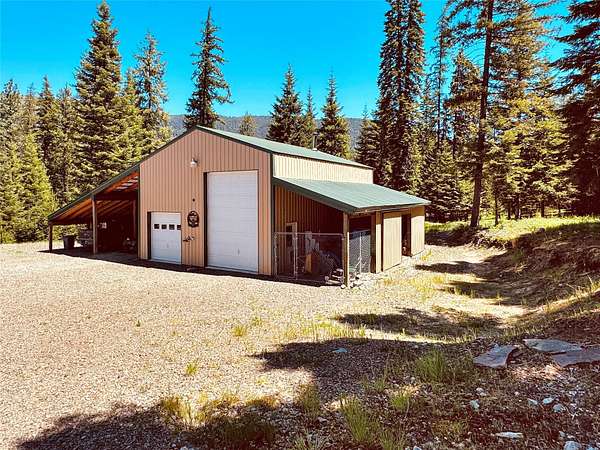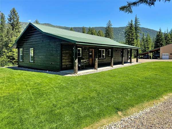 Discover this stunning home nestled above the picturesque Swamp Creek in Montana. This private, 3 bedroom retreat boasts large picture windows that frame the breathtaking scenery, a spacious kitchen adorned with beautiful hickory cabinets, and a generous walk-in pantry. The spacious master suite offers a peaceful sanctuary, while outside, a charming garden with a greenhouse invites you to indulge your green thumb. Additionally, there's a massive 28x36 shop with a balcony for added storage, a 30x36 lean-to, and a secure fenced dog kennel. Step out onto the updated deck and soak in the tranquil mountain air. Just a stone's throw away lies the Noxon Reservoir, providing opportunities for boating and endless recreation in the nearby national forest. Only 7 minutes from the resort town of Trout Creek, MT.