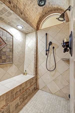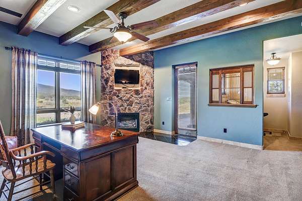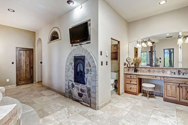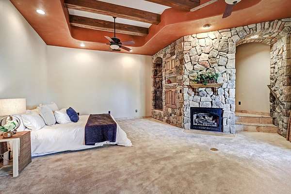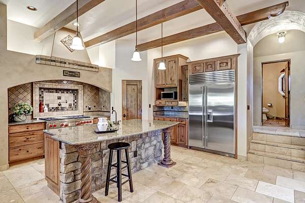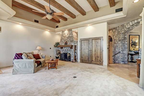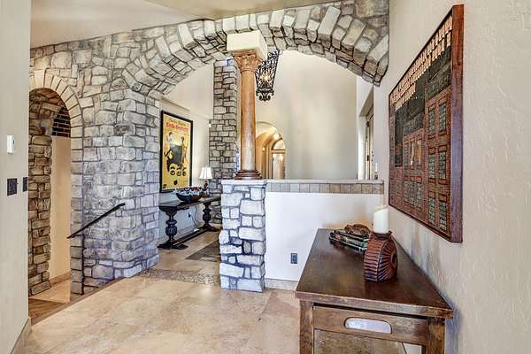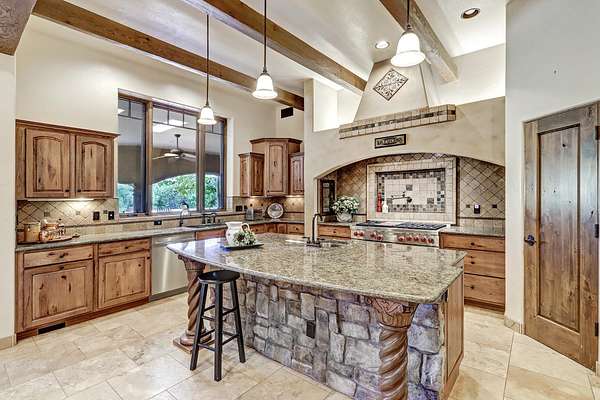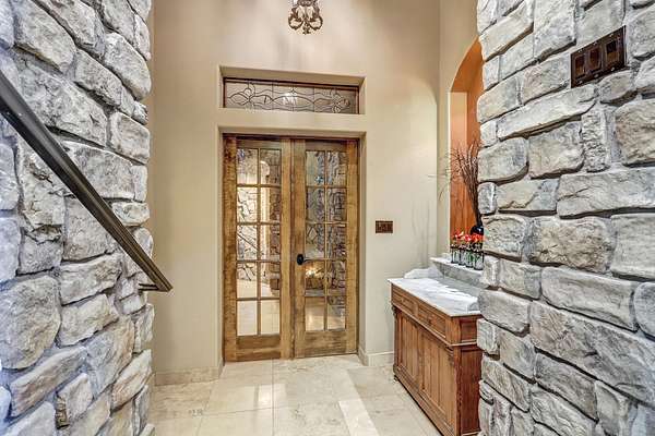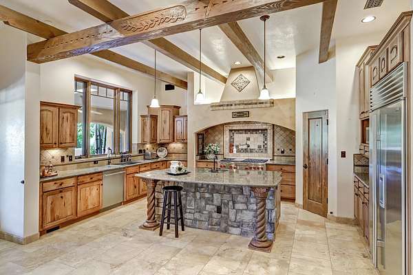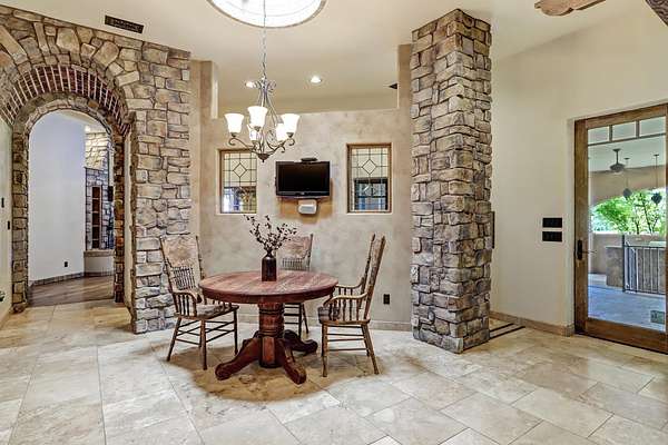 A magnificent Tuscan estate blending timeless elegance w/warmth & comfort, this gem feels like you're in the heart of Tuscany. Tiled floors, barrel ceilings, stone accents, wood beams & custom cabinetry set the tone. The chef's kitchen boasts Wolf, Sub-Zero & Asko appliances, granite counters, pot filler, prep island & walk-in pantry. A butler's pantry w/stained glass opens to formal dining room w & a two-way fireplace into living room. Entertain in the theater w/wet bar, or gather in the grand living room. A home office offers a private fireplace & entrance. Retreat to the luxurious owner's suite, two additional bedrooms, or the charming FURNISHED guest house w/full kitchen & upstairs suite. A 4-car garage completes this dream estate + 2024 a new TPO roof!