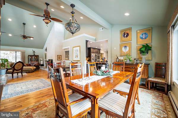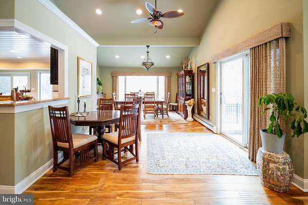 - Attic, Breakfast Area, Dining Area, Eat-In Kitchen, Island Kitchen, Open Floor Plan, Pantry, Pellet Stove, Recessed Lighting, Stall Shower Bathroom, Walk-In Closet(s), Window Treatments, Wood Floors
