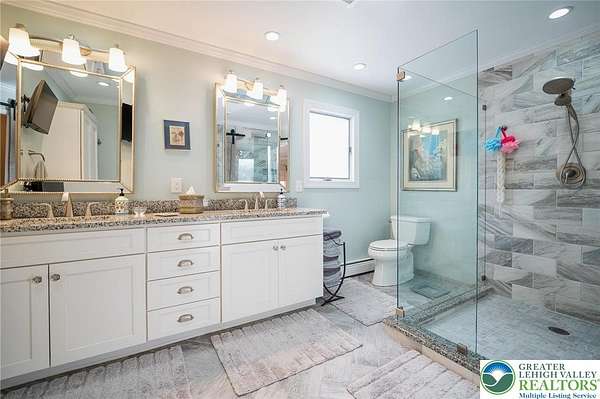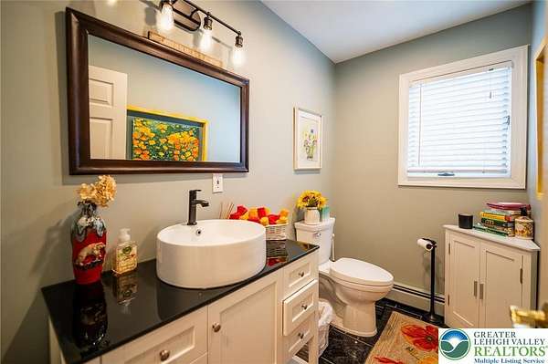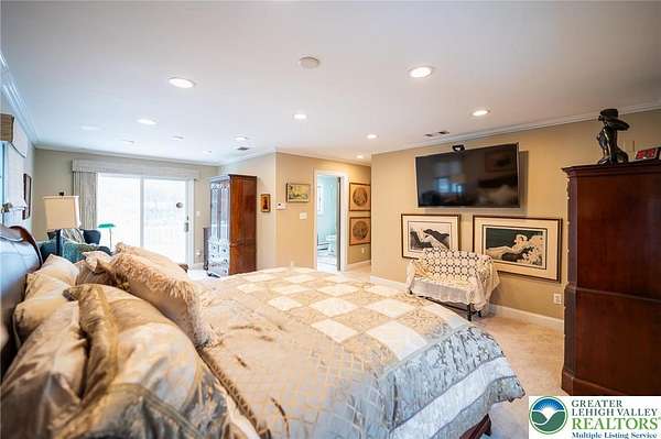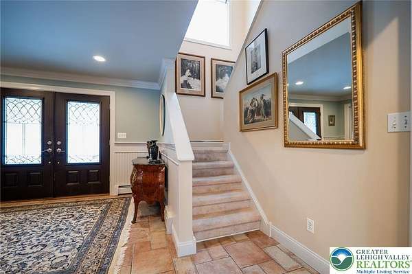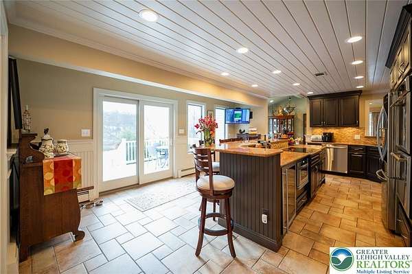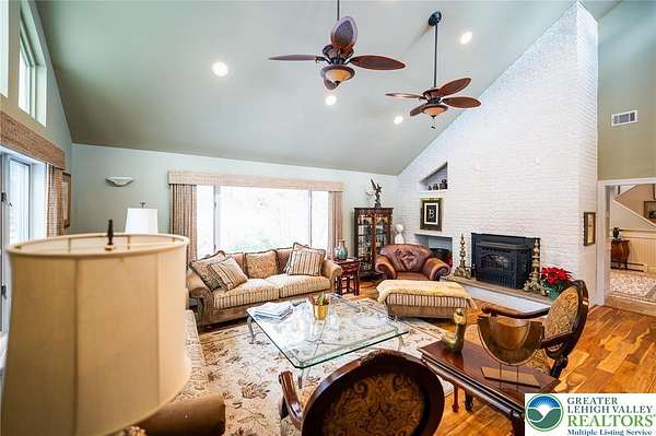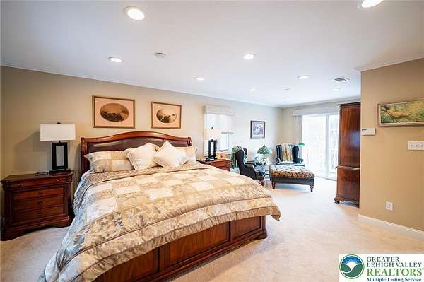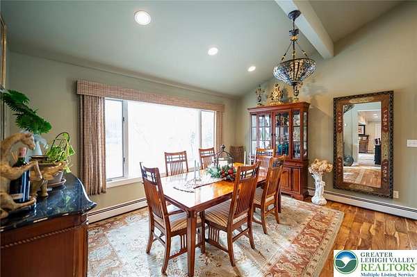 Set on over five acres of picturesque land, this custom 4-bedroom, 2.5-bath Colonial offers privacy, comfort, and room to breathe. Designed with an open layout and filled with natural light, the home is ideal for both everyday living and entertaining. The inviting family room features rich wood floors, cathedral ceilings, and a pellet stove for added warmth and charm. The well-appointed eat-in kitchen boasts granite countertops, premium cabinetry, high-end appliances, double ovens, a pantry, and a spacious center island with seating. The primary bedroom retreat includes a walk-in closet, private balcony, and spa-like bath with an oversized glass stall shower. Three additional bedrooms provide flexibility for guests or home office space. Outdoor living shines with a Trex deck overlooking a tranquil pond, an in-ground pool, and expansive grounds that create a private oasis. Set back from the road for added seclusion, this home blends luxury with nature. Additional features include central air, an economical Roth oil tank, Andersen windows, recessed lighting, a laundry room with utility sink, radon remediation system, and a two-car garage. A rare opportunity to enjoy refined living in a serene setting.