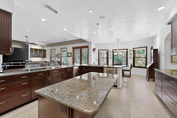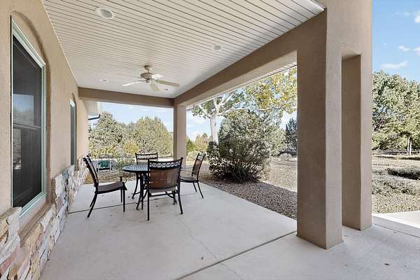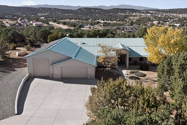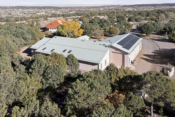 Rare opportunity in Sandia Mountain Ranch for this one-owner, single-level custom beauty on 2 acres, just minutes from Albuquerque. 3634 SF, 3BR + Office, 3 baths and a 2204 finished and insulated garage, workshop and 60' X 17.75' RV garage. The owner spared no expense when building this home - it has so many incredible features. Large cook's kitchen with Kitchen Aid appliances, convection ovens, custom cabinetry with full-extension pull-out drawers, warming drawer, 2 pantries, 3 cm thick granite countertops and a large center island. 3/4'' solid red oak floors in main living areas, dining, halls and bedrooms, natural cork in the kitchen and ceramic tile in wet areas and entry. No carpet in home. Solid wood doors and Eagle thermal, double-paned aluminum clad exterior and wood interior windows throughout.Primary bath features his & hers double sinks, an Aquatic Infinity jetted tub and a large, walk-in/roll-in shower with double showerheads and shower massage units. Large walk-in closets in every bedroom and tons of storage in the entire home. Junior suite with a private bath and walk-in shower.10 kW seller-owned, grid-connected solar power generation system and 18KWh battery backup system makes electric bills non-existent. All new metal Pro-Panel roof and colorguard snow stop system, gutters, downspouts and skylights installed in 2022. High efficiency heating and refrigerated cooling system w/ humidfier, tankless water heaters, and reverse osmosis systems in the kitchen and laundry. Floor warming system under ceramic tile in primary bath, laundry room and garage entry into home. RV garage features 50 amp electrical & water/sewer connection both inside and outside and 12'W x 13'H doors on both ends for easy entrance and exit. Home was thoughtfully designed to be fully handicap accessible. It has been landscaped using Firewise design techniques to create defensible space around the home. Entrances to the property off of both Western Trail Dr. (front) and Sedillo.