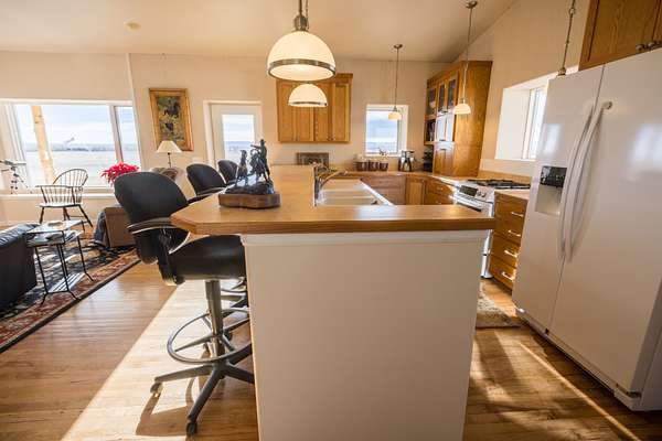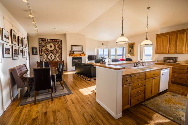 Thoughtfully designed and filled with natural light, this inviting ranch-style home offers a seamless blend of comfort, and functionality. The open-concept main living area features warm hardwood floors, solid wood cabinetry, and expansive windows that frame sweeping pasture and river views.