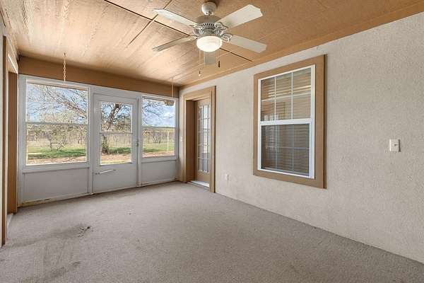 Rare 5 bedroom, 3 bath home in Iowa Park school district. Fresh paint throughout and new carpet in bedrooms. Isolated primary suite with large walk-n closet A commercial refrig and range are ready to feed your army! Enclosed patio serves as second living area. 20+ acres with livestock barns for your show animals, pets or horses. Super energy efficient with Geo-Thermal system. Large insulated shop with overhead door plus Conex container for waterproof storage. Country living just blks from city convenience. All concrete construction. Aerobic system. Propane tank will convey (for central heat and stove only). Microwave is a convection also. (2) GeoThermal units in attic-- 1st) common area, master and bedroom by utility room... 2nd) other 3 bedrooms.