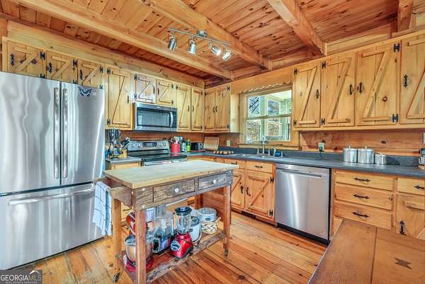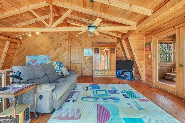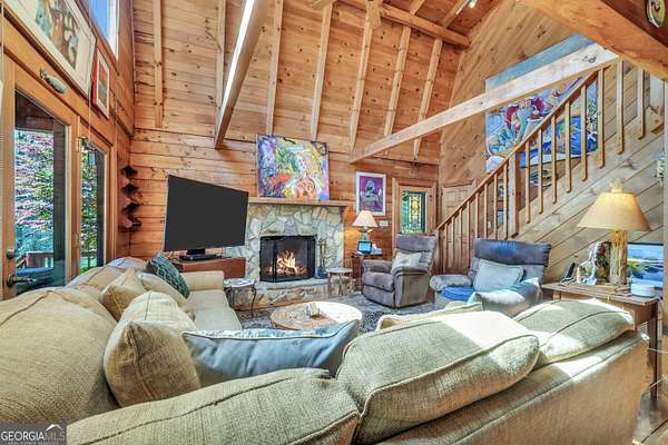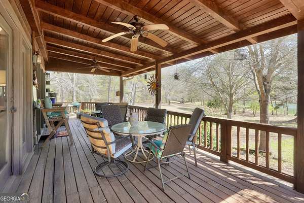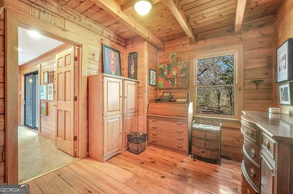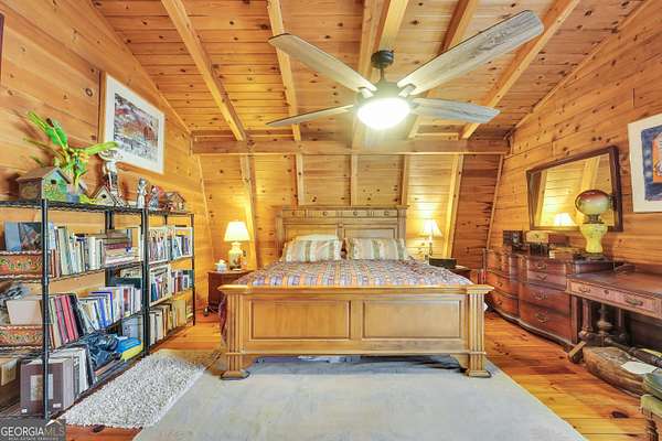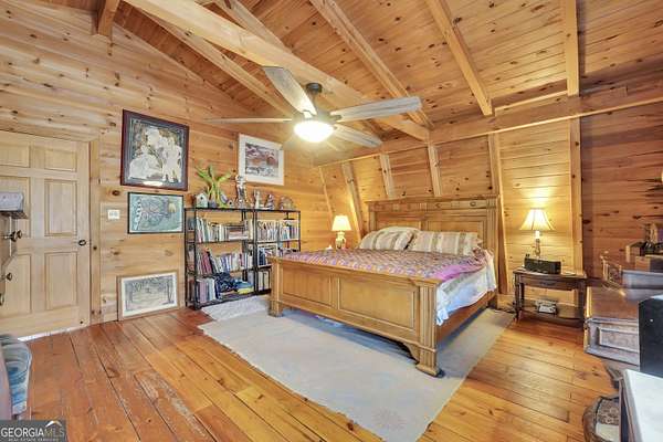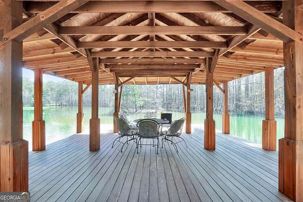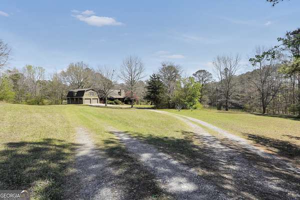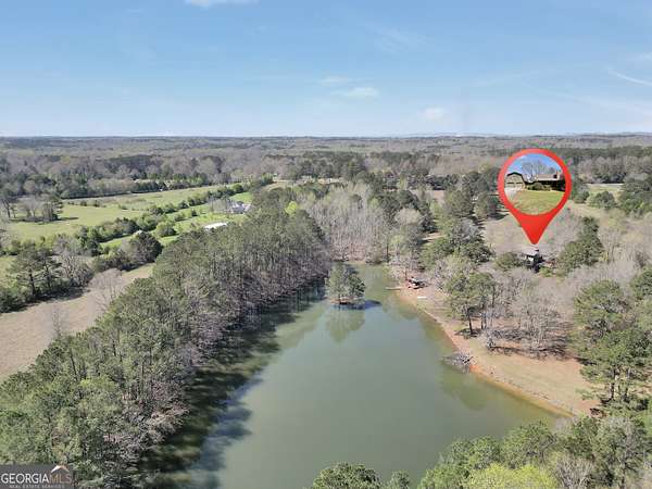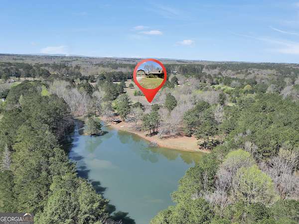 Welcome to an extraordinary private estate in Lamar County, where timeless craftsmanship meets the beauty of nature across 53.95 breathtaking acres. Centered around a stunning 3-acre pond, this one-of-a-kind property offers an unmatched lifestyle of privacy, recreation, and refined rustic elegance. This thoughtfully designed 3 bedroom, 3.5 bath two-story cabin showcases warmth and character throughout, highlighted by antique barnwood flooring and expansive windows that frame serene water views and rolling landscape beyond. The open-concept living and dining space is both inviting and impressive-perfect for intimate gatherings or effortless entertaining. The upper level features a spacious loft and a luxurious primary suite complete with a walk-in closet, creating a peaceful retreat tucked among the treetops. On the main level, two additional bedrooms and beautifully appointed baths provide comfort and functionality for family and guests alike. A standout feature of the property is the two-car garage, reimagined as a stunning flex space with a full wall of windows overlooking the land, along with an additional loft above-ideal for a studio, entertaining space, or private escape. The fully finished terrace level offers a full bath and endless potential for a private in-law suite or teen retreat, perfectly suited for multigenerational living. Outdoors, the experience is nothing short of exceptional. The picturesque 3-acre pond is complemented by a 22x22 covered pavilion, floating dock, and private island-creating a setting that feels like your own personal resort. Whether enjoying quiet mornings by the water, hosting gatherings under the pavilion, or exploring the land for hunting and recreation, every inch of this property is designed to be experienced. A rare offering where luxury meets land, lifestyle, and legacy-this is more than a home, it's a destination.