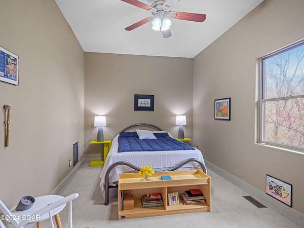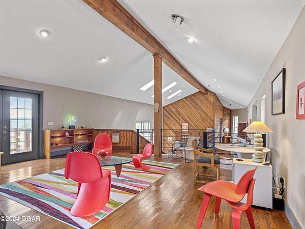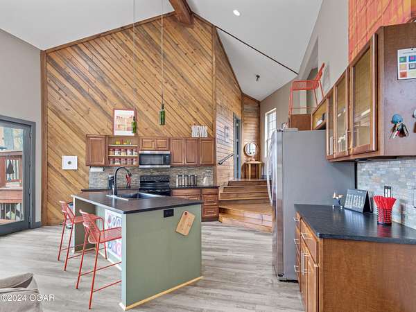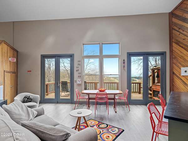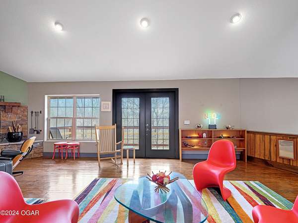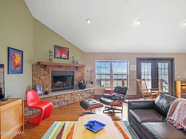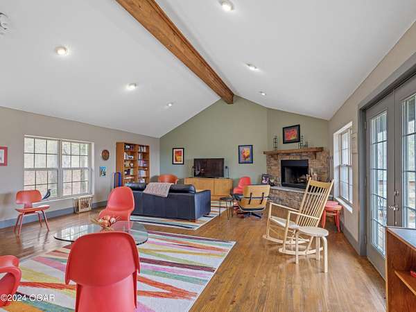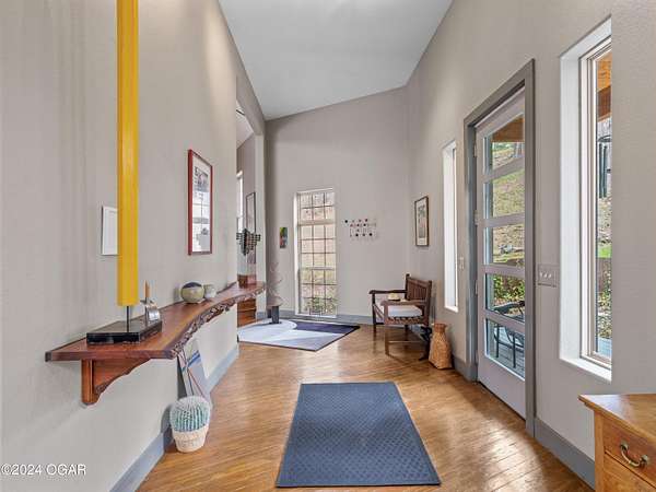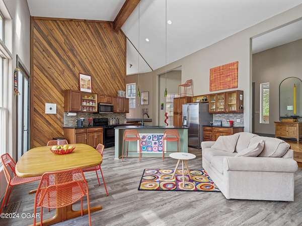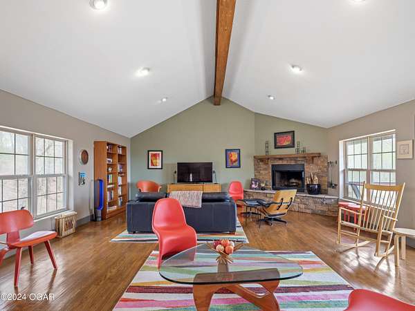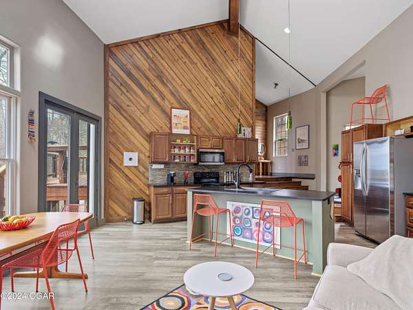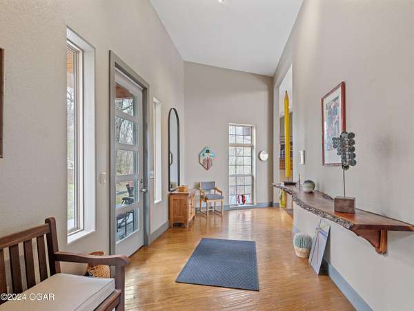 Welcome to your dream home nestled on 4 breathtaking acres in the coveted Hillspeak area, just minutes away from the vibrant art, culture, and local charm of Eureka Springs. This spacious 3-bedroom, 2-bathroom contemporary style home boasts soaring ceilings, an open floor plan, and an abundance of wall space perfect for showcasing your art collection. Natural light floods the interior through floor-to-ceiling windows, illuminating the rich wood floors that flow seamlessly throughout. The heart of the home is the island kitchen with tons of cabinet and counter space. A luxurious primary suite, complete with an elegant en suite featuring a walk-in shower and double sinks, providing a serene retreat at the end of the day.