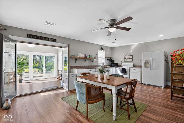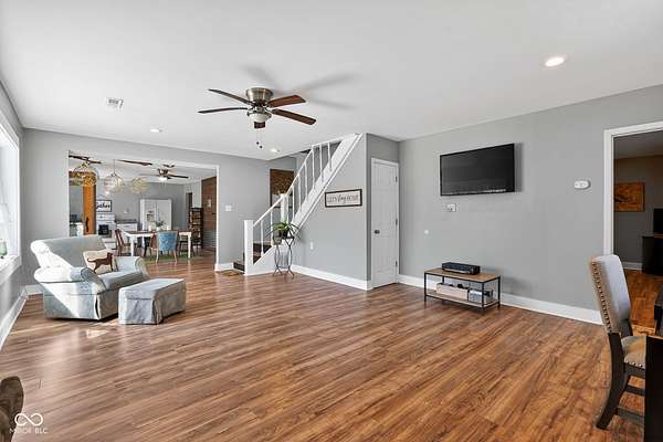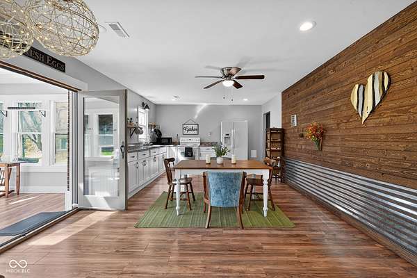 Situated on 3.48 acres in Noblesville, this unique property offers over 4,100 sq ft of finished living space with a flexible layout designed for comfort and versatility. The main level features an open-concept living area, spacious kitchen, sunroom with skylights, and multiple bedrooms, while the upper level includes a private primary suite and a large bonus/flex space ideal for a second living area, office, or entertainment room. Recent updates include HVAC, electrical, water heater, flooring, and epoxy-finished upper level with lifetime warranty. The property itself is the true highlight-featuring open yard space, wooded trails, fruit trees, and room for gardening, recreation, or future expansion. Additional features include a two-car garage, storage shed, private well and septic, and no HOA. Conveniently located just minutes from Cicero, SR-37, and Noblesville, this property offers a rare blend of space, privacy, and accessibility.