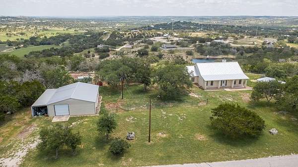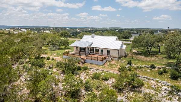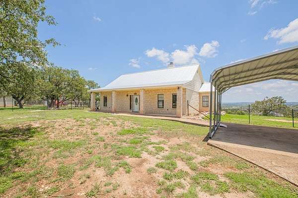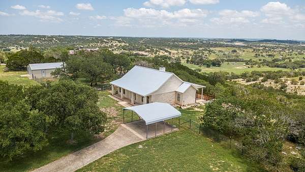 Sitting high on a gentle hilltop, this charming home serves up unbeatable views of the Hill Country-rolling hills, big skies, and sunsets that never get old. Designed to make the most of its setting, the house features large windows, a sprawling patio, and cozy indoor-outdoor living. Inside, you'll find 3 bedrooms, vaulted ceilings, and a spa-like primary bathroom. This 5.58-acre property includes a covered carport, a spacious workshop/flex space, a fenced yard & much more. Call today to schedule a showing & experience this ideal Hill Country home.