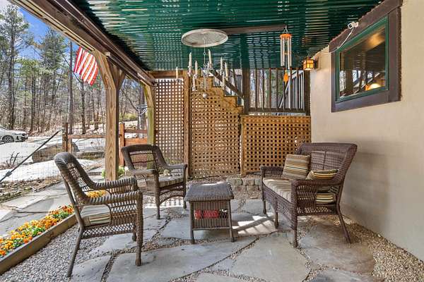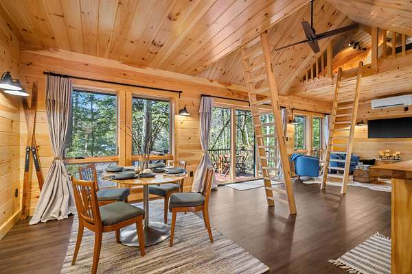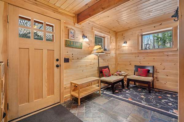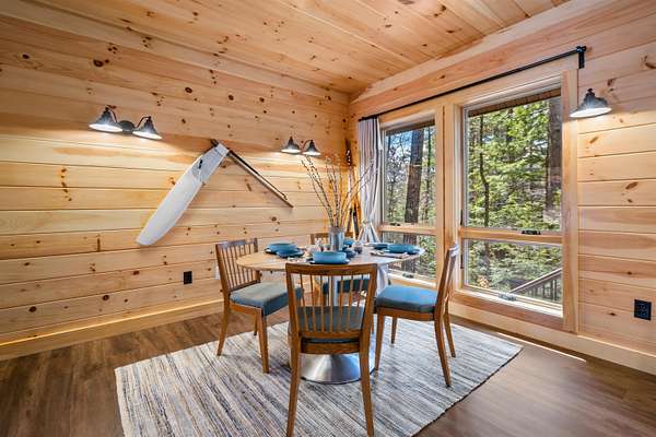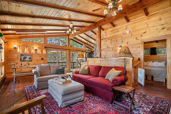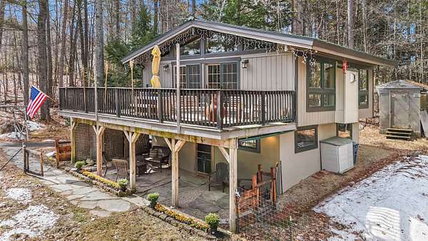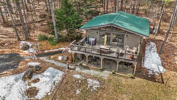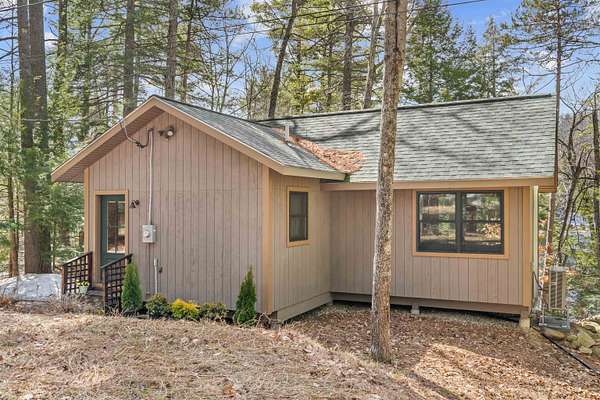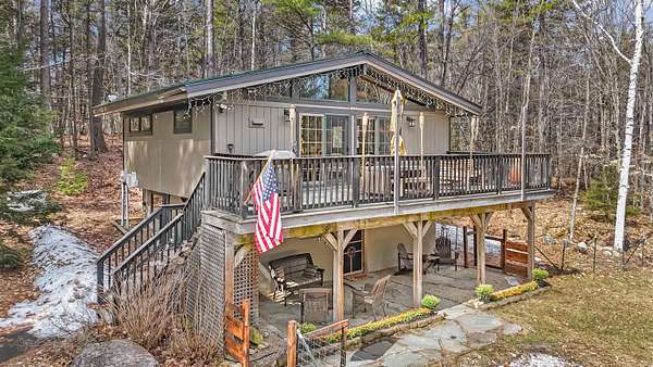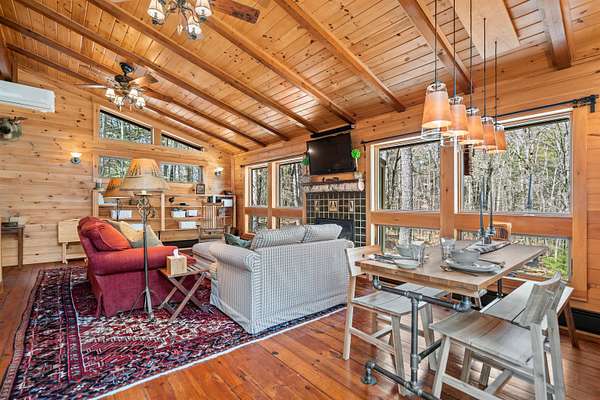 Discover a rare opportunity to own two dwellings on one lot set on 5.5 private acres with direct water access—your perfect retreat for relaxation, recreation, or multi-generational living. The main home offers 3 bedrooms and 1.5 baths, tucked into a secluded wooded setting that feels like your own private escape. Inside, you’ll find beautifully crafted knotty pine tongue-and-groove throughout, creating warmth and character in every room. The cozy family room features a fireplace and dramatic oversized chalet-style windows that bring the outdoors in. A well-appointed kitchen makes entertaining easy, while the extra-large deck is ideal for dining, gathering around the chimenea, and enjoying evenings under the stars. The spacious yard, complete with a firepit, delivers that classic camping feel right at home. The waterside cottage, with adu potential, is truly a hidden gem. This charming dollhouse-style retreat is nestled among the trees just steps from picturesque Shaw’s Pond. Designed as a peaceful 3-season getaway, it features a studio-style layout with a full bath, a loft sleeping area, and a private deck showcasing serene water views. Whether used for guests, rental potential, or your own quiet escape, this space is full of possibility. Shaw’s Pond offers a tranquil setting for kayaking, canoeing, fishing, and enjoying local wildlife—bringing nature right to your doorstep. Come live your lifestyle by design in this one-of-a-kind property that blends comfort, charm, and outdoor adventure.