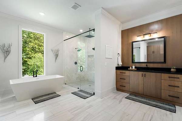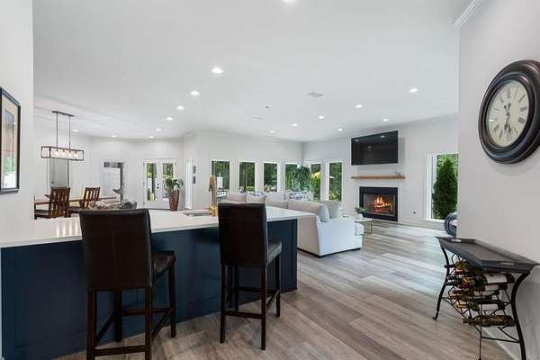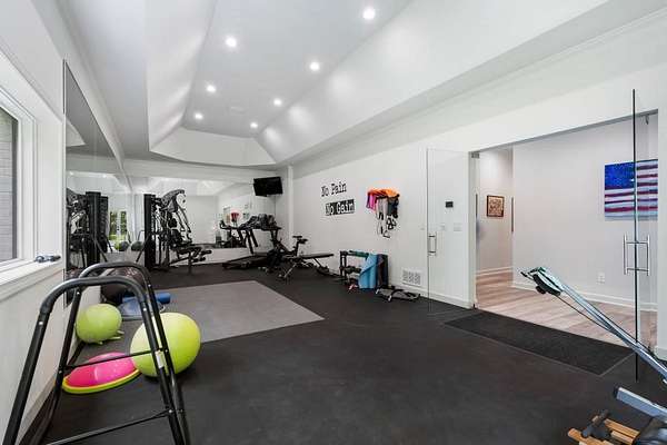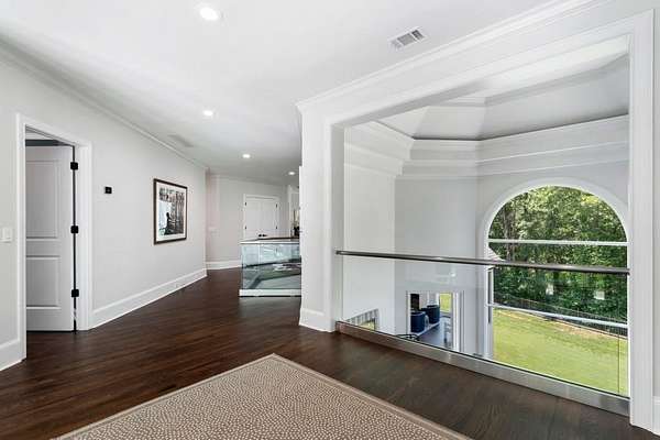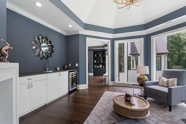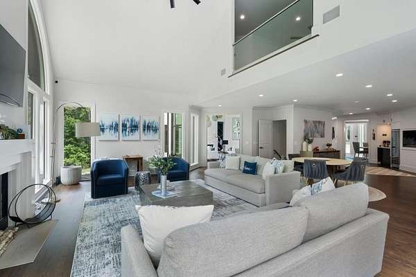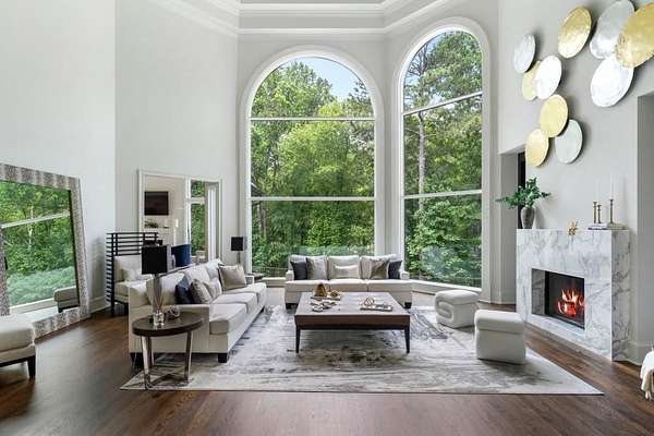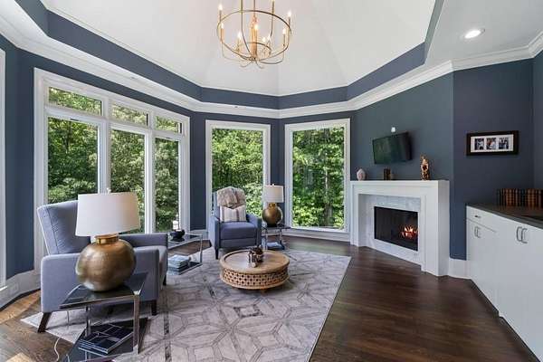 As you follow the long, private drive, you're immediately captivated by the grandeur of this Montclair Estate. Nestled on an expansive, beautifully landscaped property, this exquisite home commands attention from the moment you arrive. Upon entering, you're greeted by soaring ceilings and a striking glass balcony above, offering an immediate sense of openness and sophistication. To the right of the grand foyer, a refined office filled with natural light provides an inspiring space for work. To the left, the elegant dining room features a beautiful bay window that fills the space in soft light-perfect for hosting formal dinners. Beyond the dining room, a meticulously designed built-in aquarium captures attention, flanked by a modern wine cooler and wet bar. The formal living room is the focal point, featuring soaring coffered ceilings and a magnificent stone fireplace that anchors the space. The large panoramic windows overlooking the deck invite an abundance of natural light, creating an inviting ambiance throughout the main level. This sophisticated layout flows seamlessly into the heart of the home: a gourmet kitchen. At its center, a sprawling marble island offers ample seating for casual meals or entertaining. A herringbone-patterned backsplash adds a refined touch, while a large farmhouse sink, warming drawer, and high-end six-burner gas stove cater to all your cooking needs. Double ovens and a strategically placed microwave ensure perfect meal preparation. The kitchen transitions gracefully into a spacious open-concept living area, where a charming breakfast nook sits adjacent to a cozy sitting area centered around a beautifully designed fireplace. This space effortlessly accommodates a variety of social occasions. An oversized pantry with custom-built shelving offers practical storage solutions, while a generously sized laundry room across the hall features additional built-ins and a convenient sink. Located on the main floor, the tranquil primary suite awaits. This luxurious retreat features a cozy fireplace and oversized windows that blend comfort with sophistication. A dedicated sitting area, complete with a morning kitchen, provides a peaceful corner for relaxation. The spa-inspired primary bath features a lavish soaking tub and an oversized walk-in shower for a rejuvenating experience. A double vanity with custom cabinetry and two expansive walk-in closets-complete with a central island-offer exceptional space and organization. Upstairs, four generously sized guest bedrooms, each with a luxurious full bath featuring modern fixtures and ample storage. At the end of the hallway, a bright and versatile bonus room serves as a playroom or additional office space. A conveniently located laundry chute adds a thoughtful touch, connecting directly to the main laundry room below. The terrace level features additional living spaces, from a lounge to a game room; this is an entertainer's paradise. You'll find a custom home theatre with elevated seating and cinematic lighting, a spacious home gym, a massage room and more. This level also features a fully equipped second kitchen and bar area, complete with stovetops, a mini fridge, microwave, ice maker, sink, and built-in shelving-perfect for entertaining. Two additional bedrooms share a well-appointed Jack-and-Jill bathroom, ideal for guests. The thoughtfully landscaped grounds create a peaceful and picturesque setting. A charming porch and patio space invite you to relax. At the heart of this outdoor oasis is a stunning resort-style pool with a luxurious hot tub, as well as a grill and prep area. The flat, spacious yard provides ample room. Located in prestigious Johns Creek, adjacent to the Chattahoochee National Forest and River, this estate blends architectural grandeur with everyday functionality. It offers a lifestyle defined by elegance, comfort, and connection-luxury living at its finest.