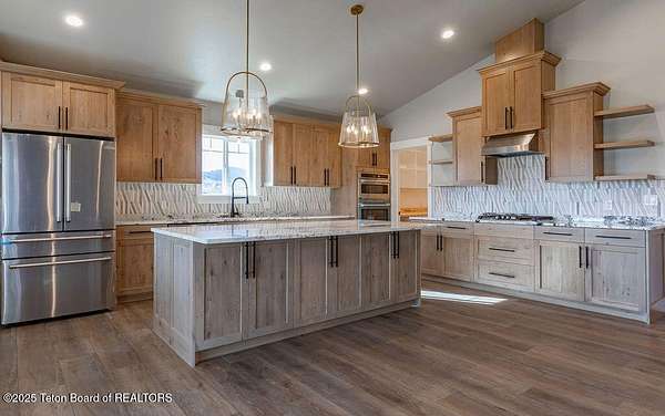 Experience the beauty of Star Valley from this thoughtfully designed, 3,920 sq ft new construction masterpiece, set on 3.90 peaceful, flat acres in Afton, Wyoming. Built by Eli Hale, known for precision and craftsmanship, this 5-bedroom, 3-bathroom home combines natural elements with elevated modern features—perfect for those seeking space, quality, and mountain living. Find this home featured on HGTV's ''House Hunters''.